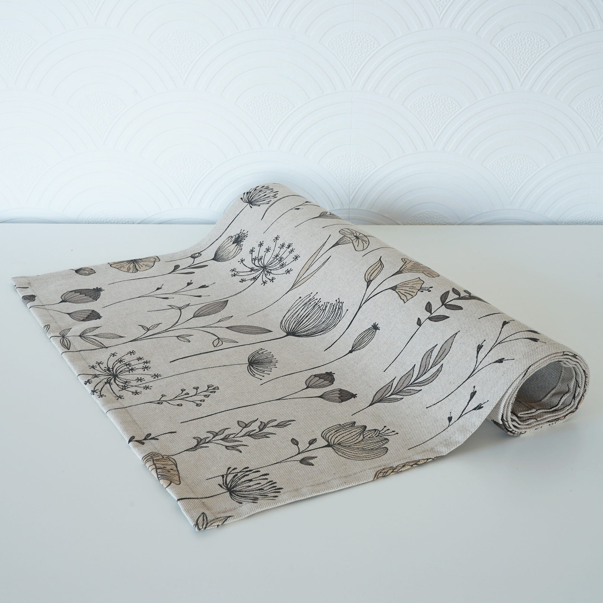 BIEŻNIK 280CM SKANDYNAWSKI LNIANY WYGLĄD ROŚLINNY WZÓR KWIATY ROŚLINY
