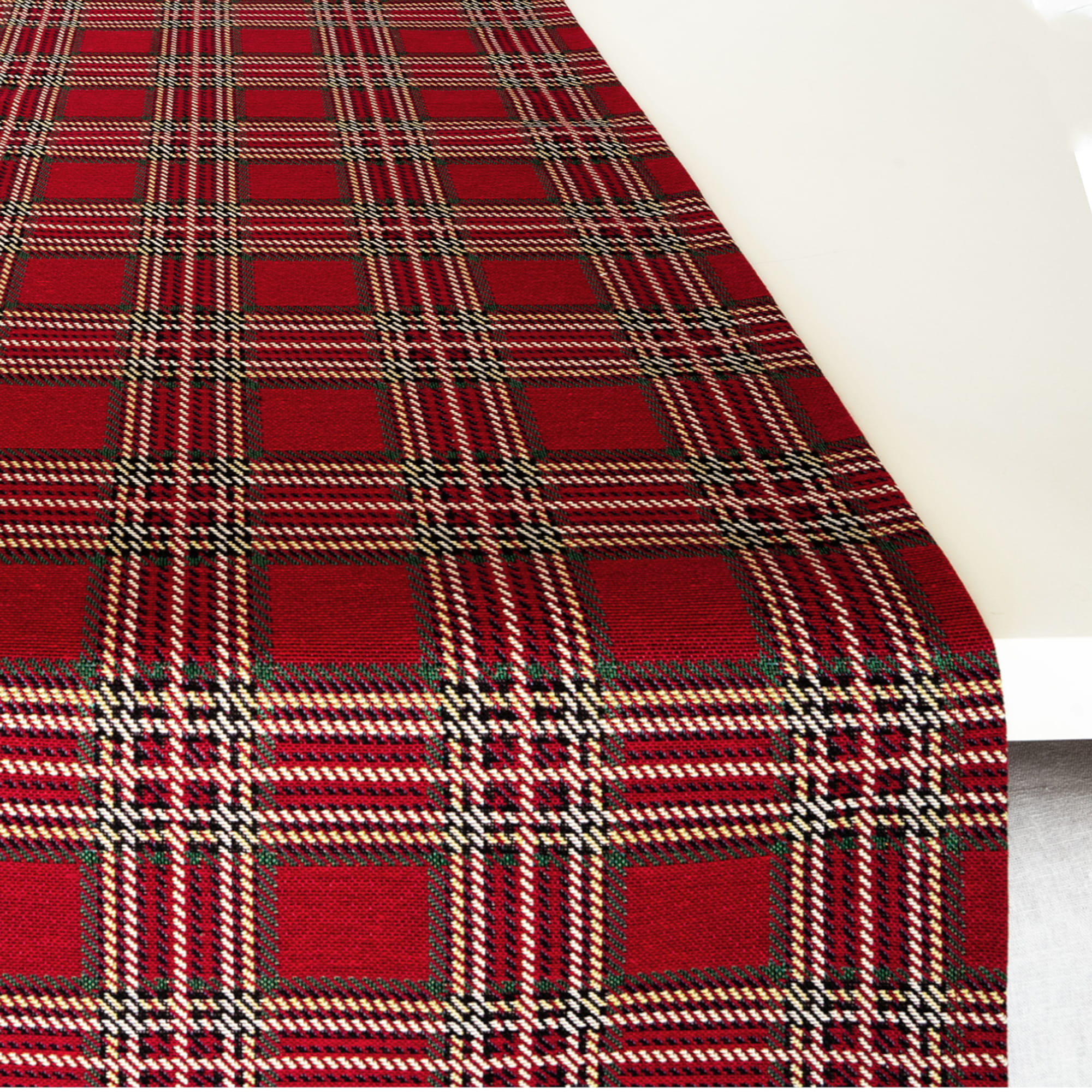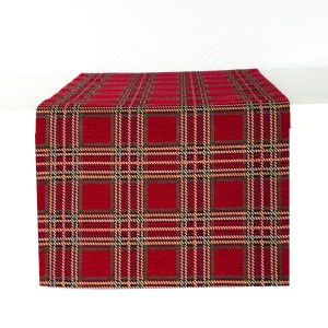 Bieżnik jesienny i świąteczny z gobelinu – czerwona krata | PolDesign, długośc 140cm
