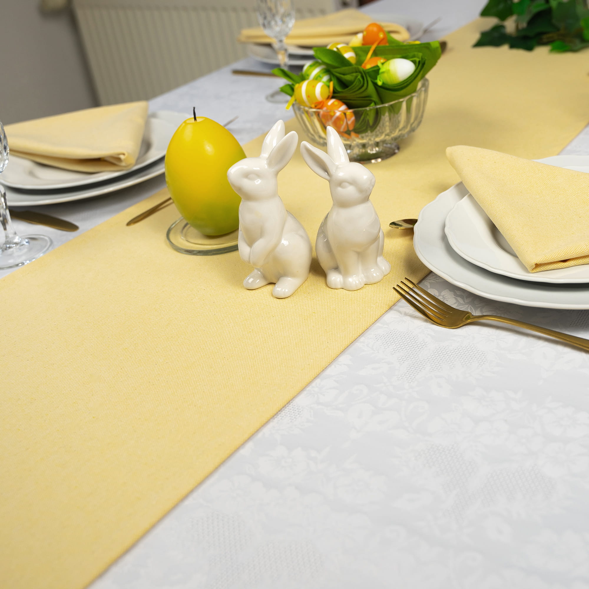 Jasny, słoneczny bawełniany bieżnik w kolorze żółtym to idealny dodatek do dekoracji każdego stołu.
