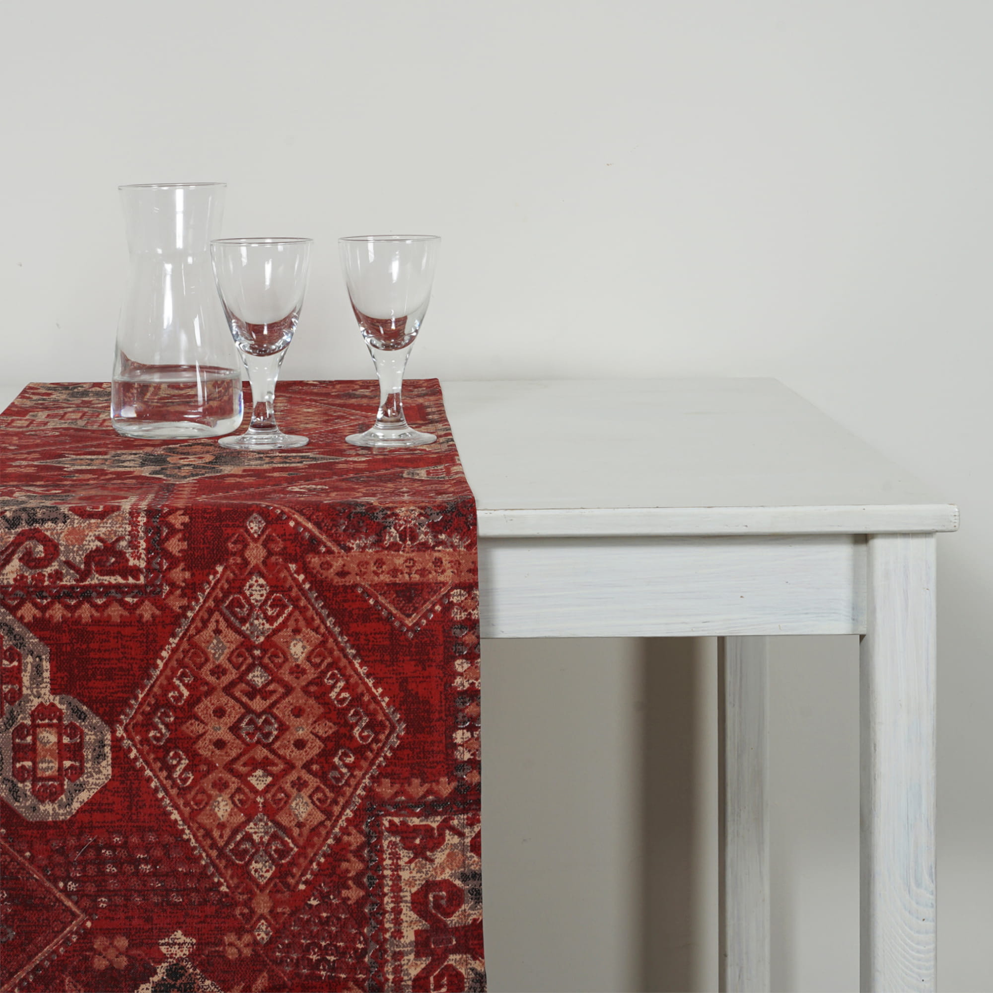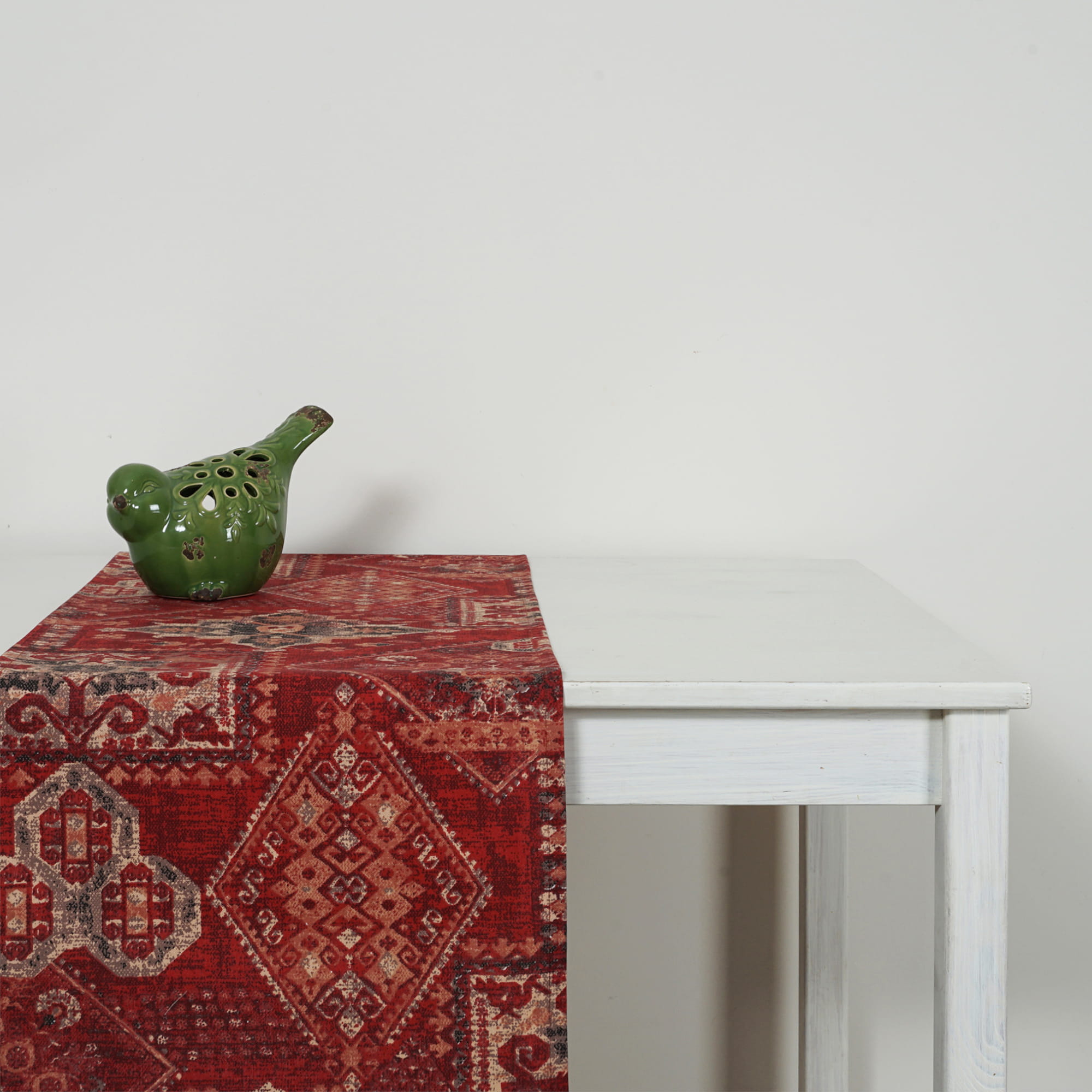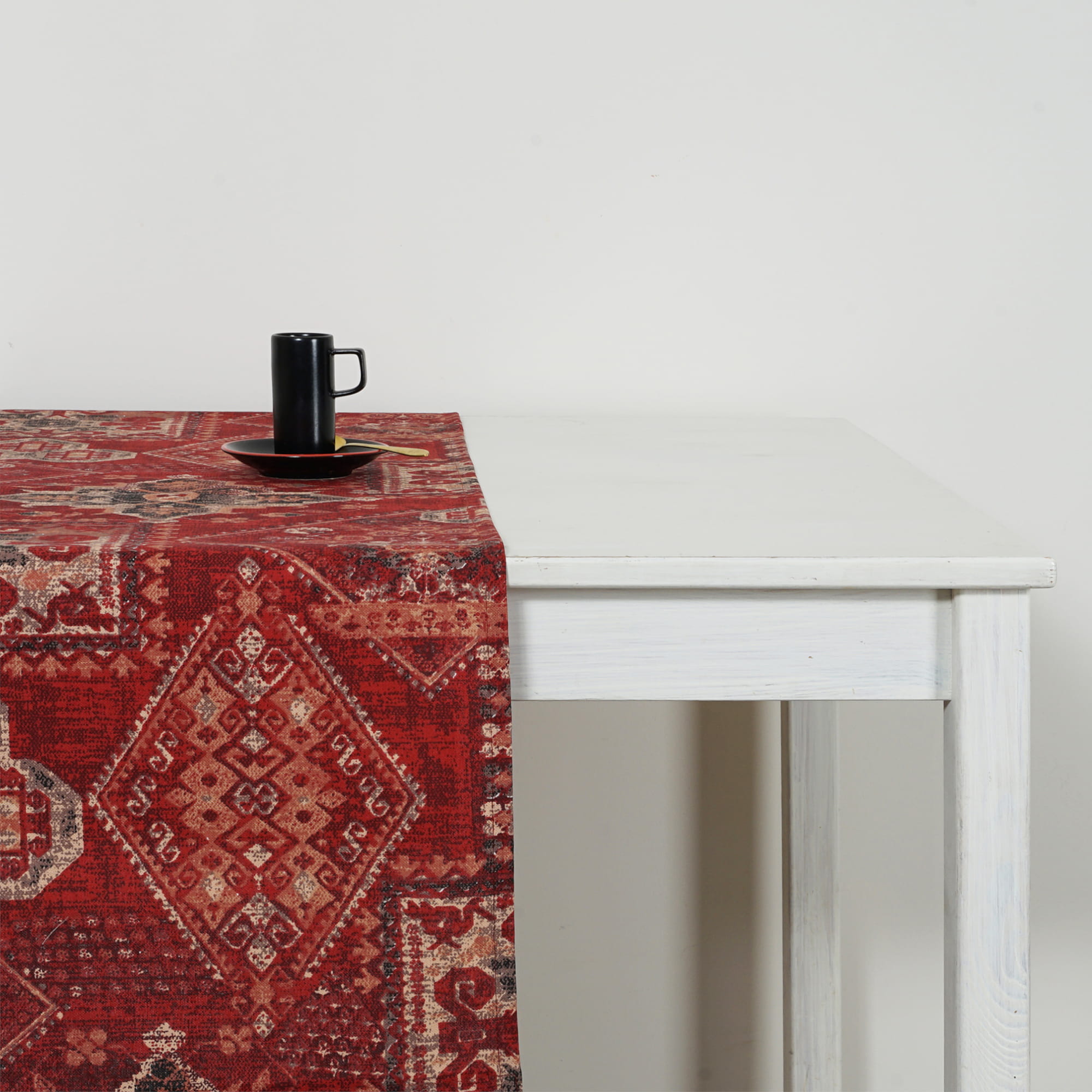 Bieżnik na stół o wzorze etno-orientalnym ,który ociepla atmosferę wnętrza.