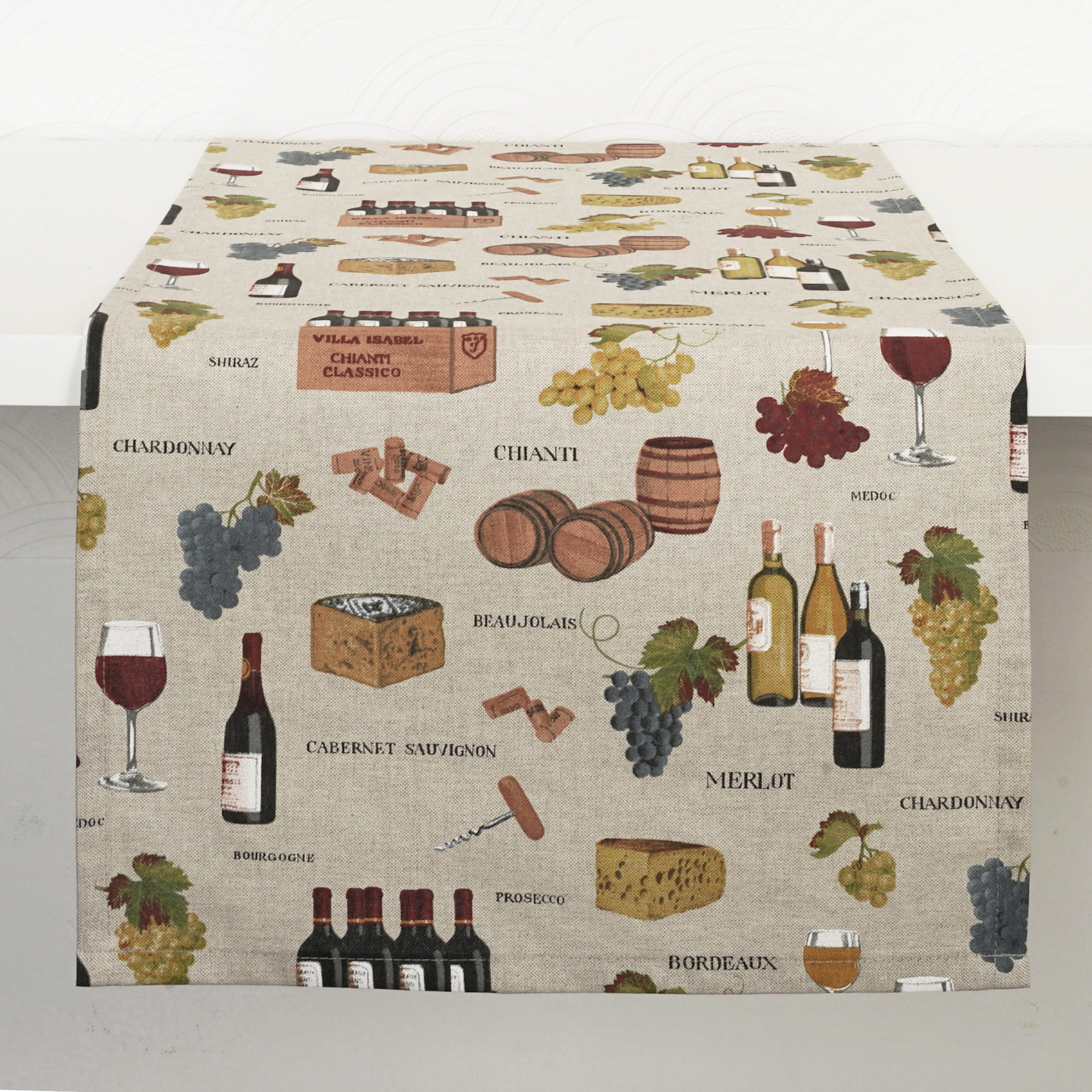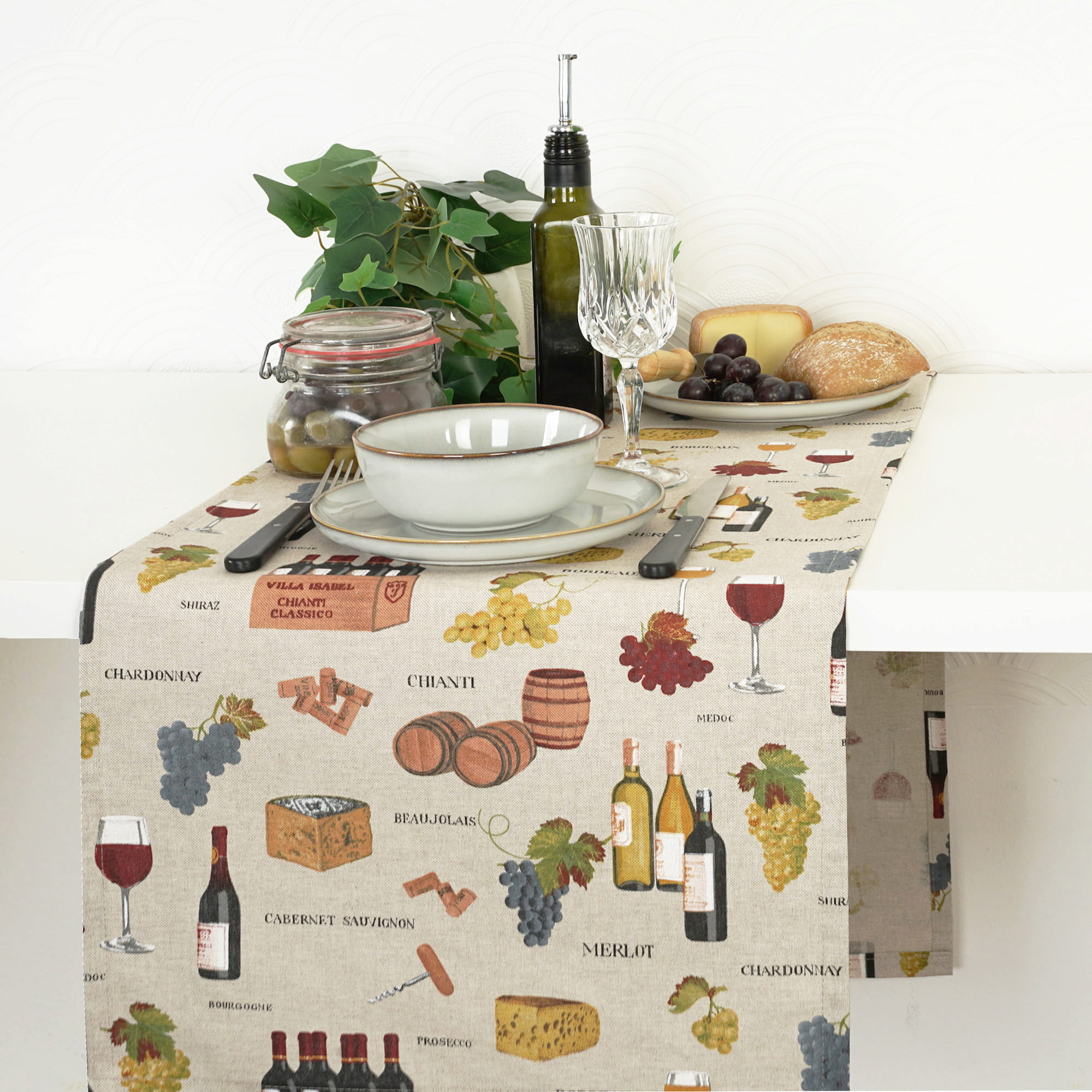 Przedmiotem oferty jest Bawełniany Bieżnik 37*220cm, o śródziemnomorskim motywie Winiarnia uszyty w naszej pracowni.