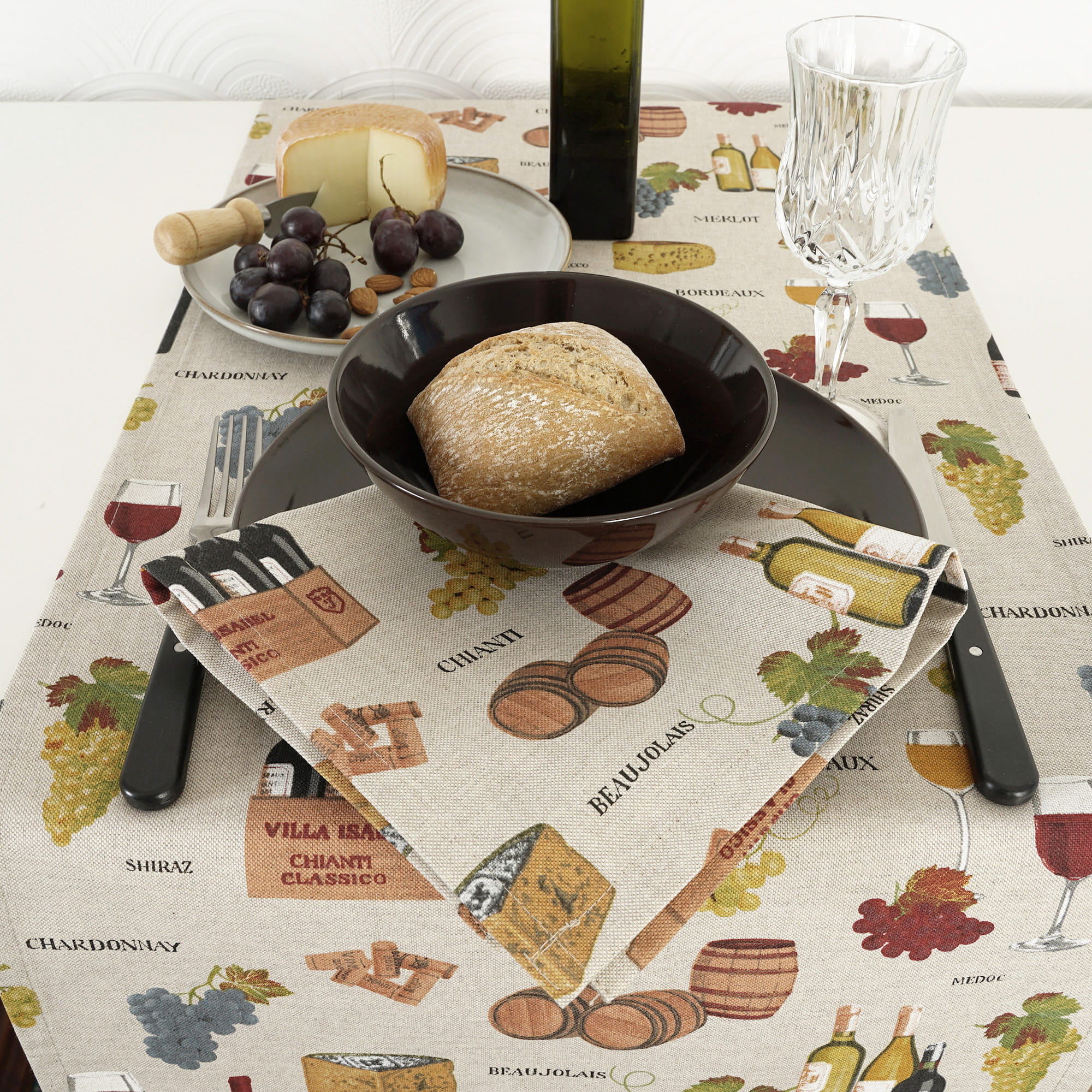 - Odcienie brązu, zieleni, żółci, naturalnego lnu, czerwonego i fioletu winogron wprowadzają spokój i przyjemną wakacyjną atmosferę każdego stołu.