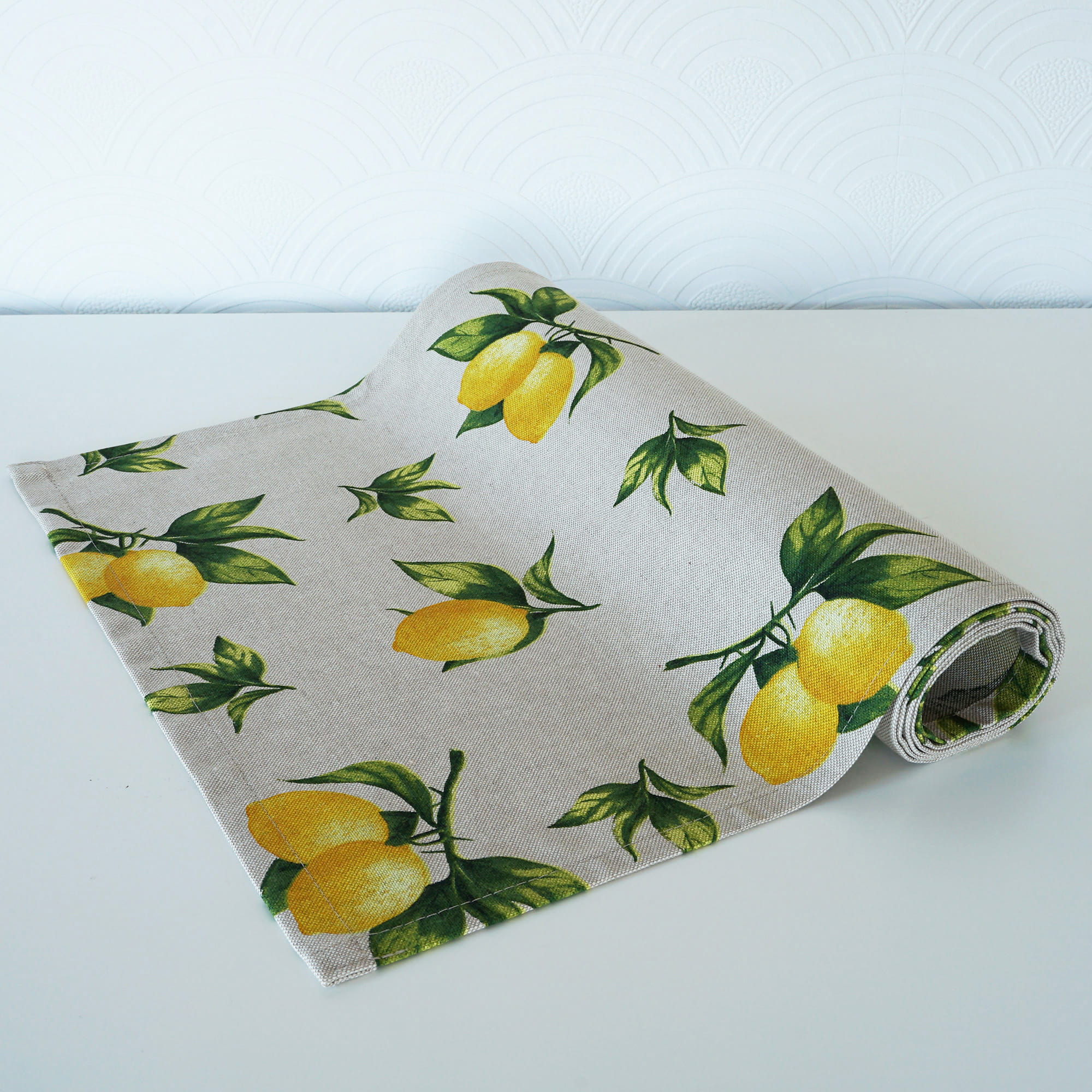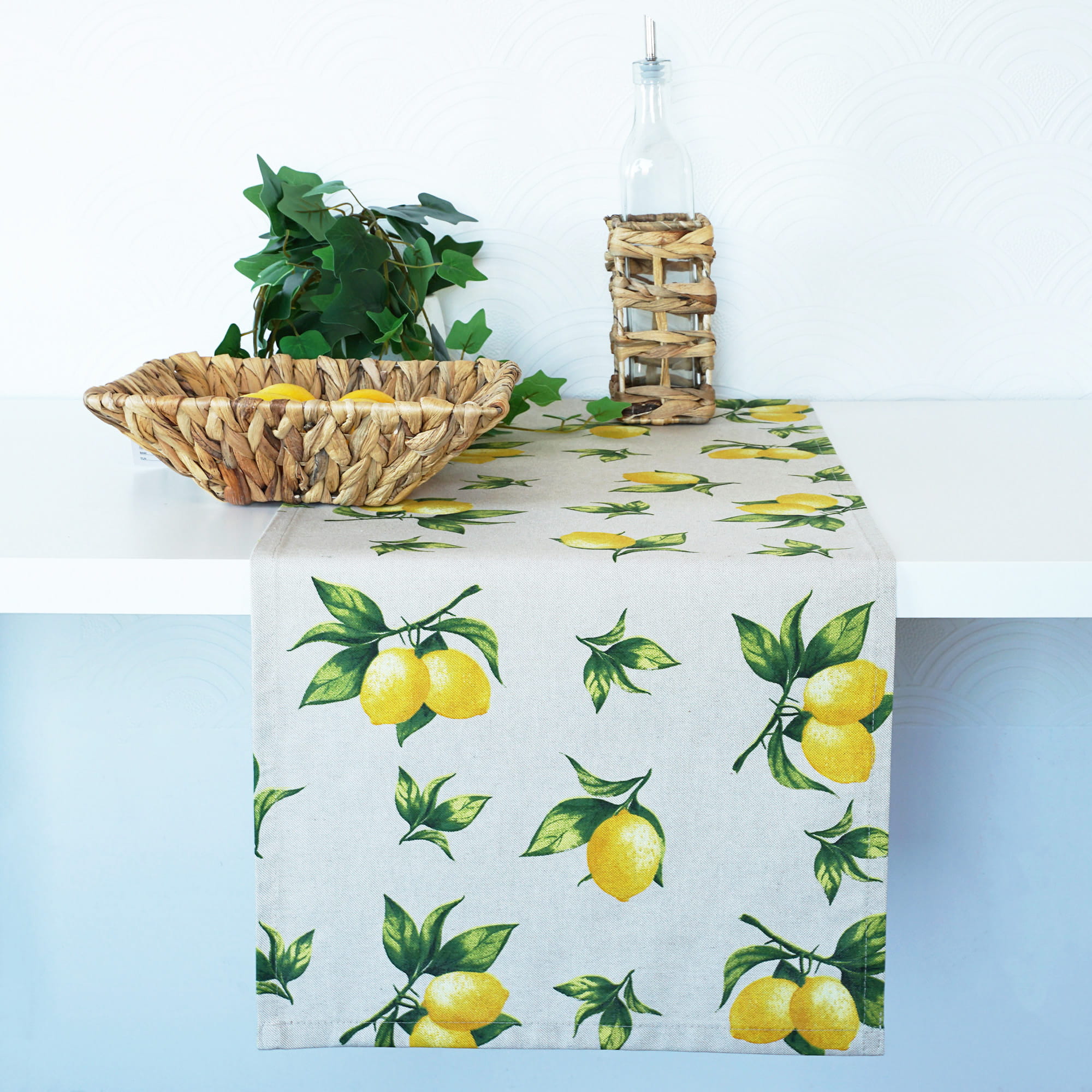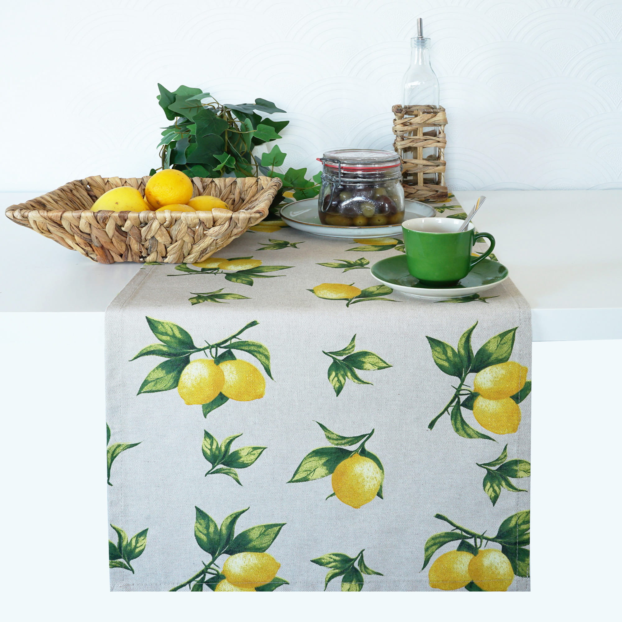 Przedmiotem oferty jest Bieżnik Letni z nadrukiem w cytryny uszyty w naszej pracowni.