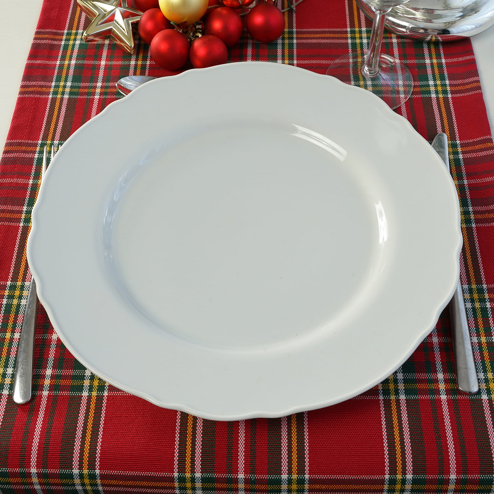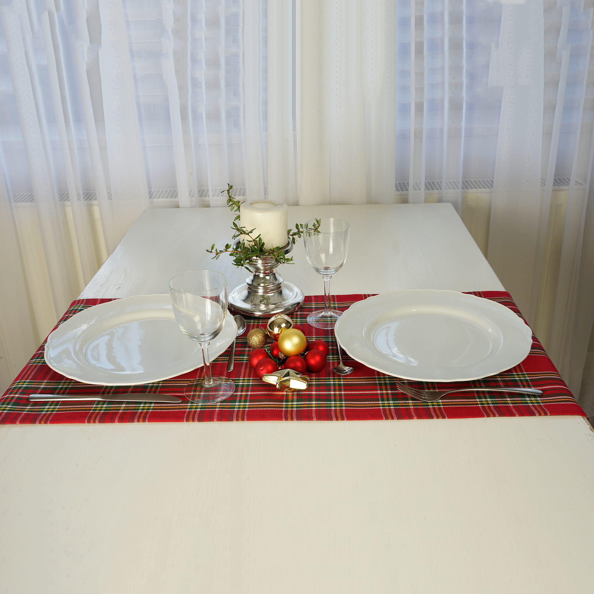 Klasyczny wzór w czerwono-zieloną kratę natychmiast przywołuje na myśl ciepłe, rodzinne święta Bożego Narodzenia, dodając stołowi uroku i przytulności.
