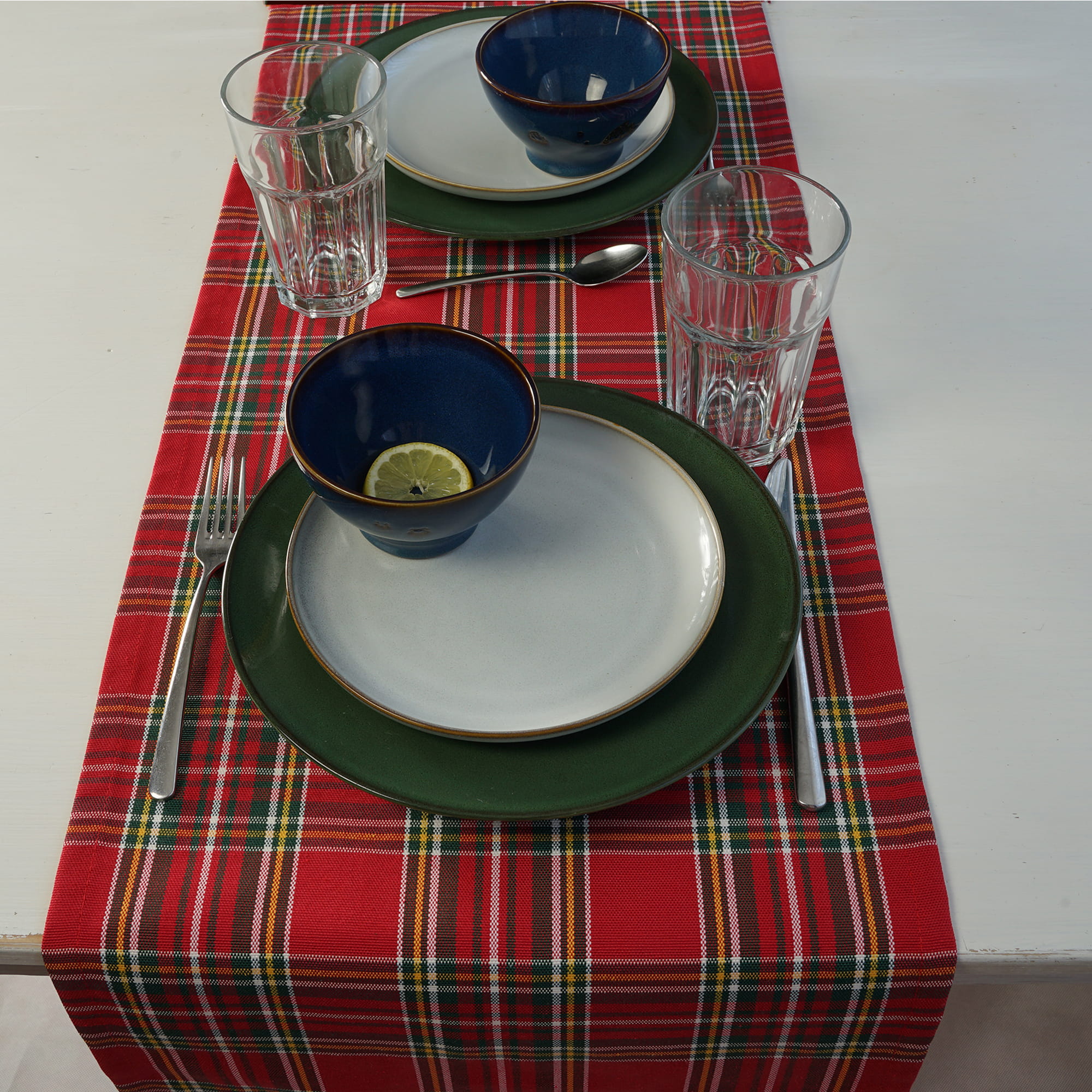 Klasyczny wzór w czerwono-zieloną kratę natychmiast przywołuje na myśl ciepłe, rodzinne święta Bożego Narodzenia, dodając stołowi uroku i przytulności.
