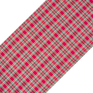 Bieżnik Świąteczny 220cm Czerwona krata ze ZŁOTĄ NITKĄ Poldesign
