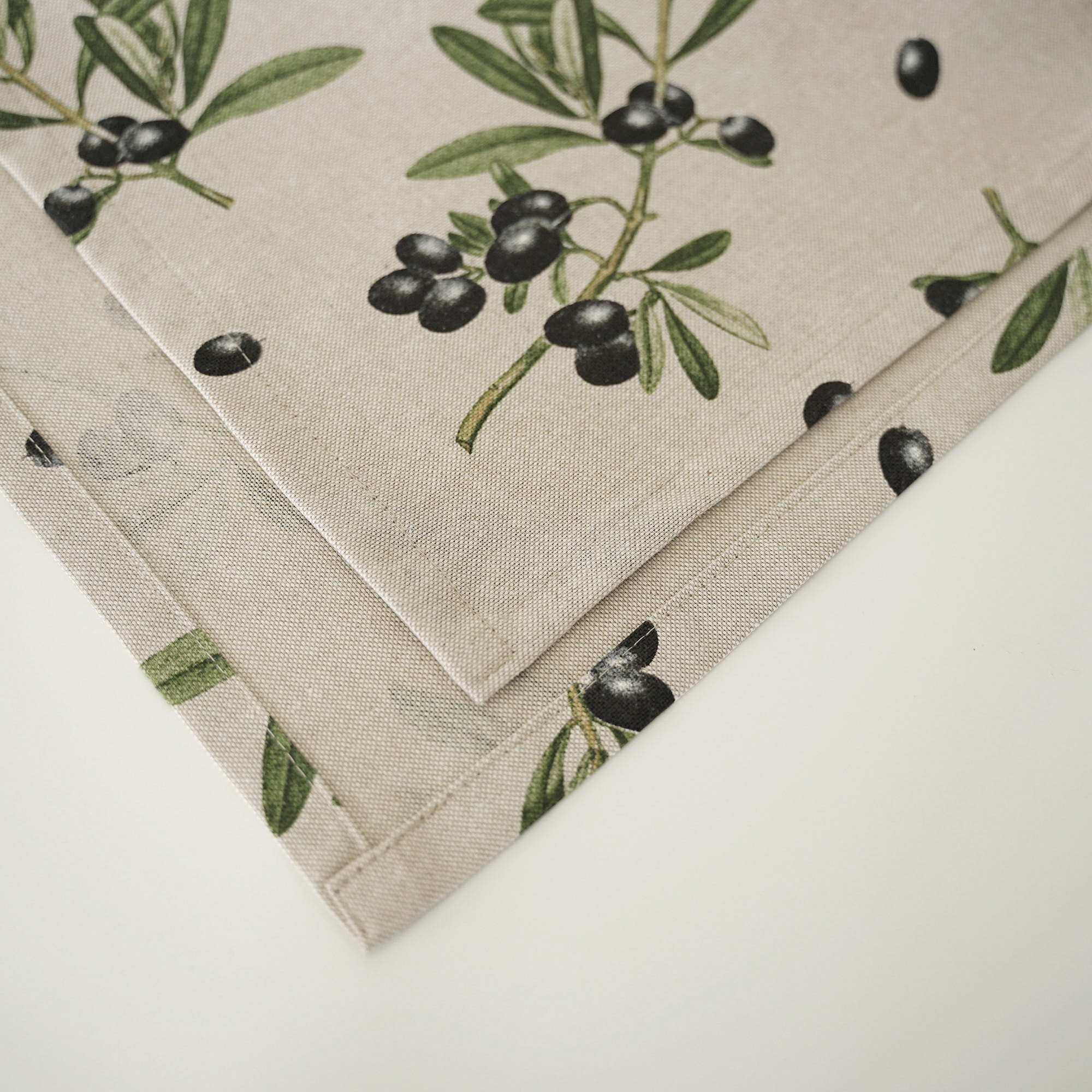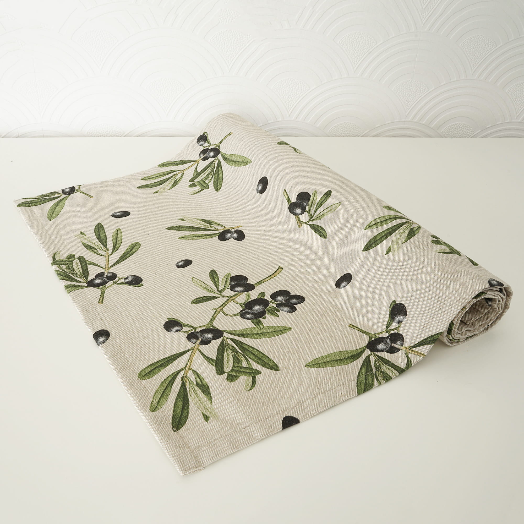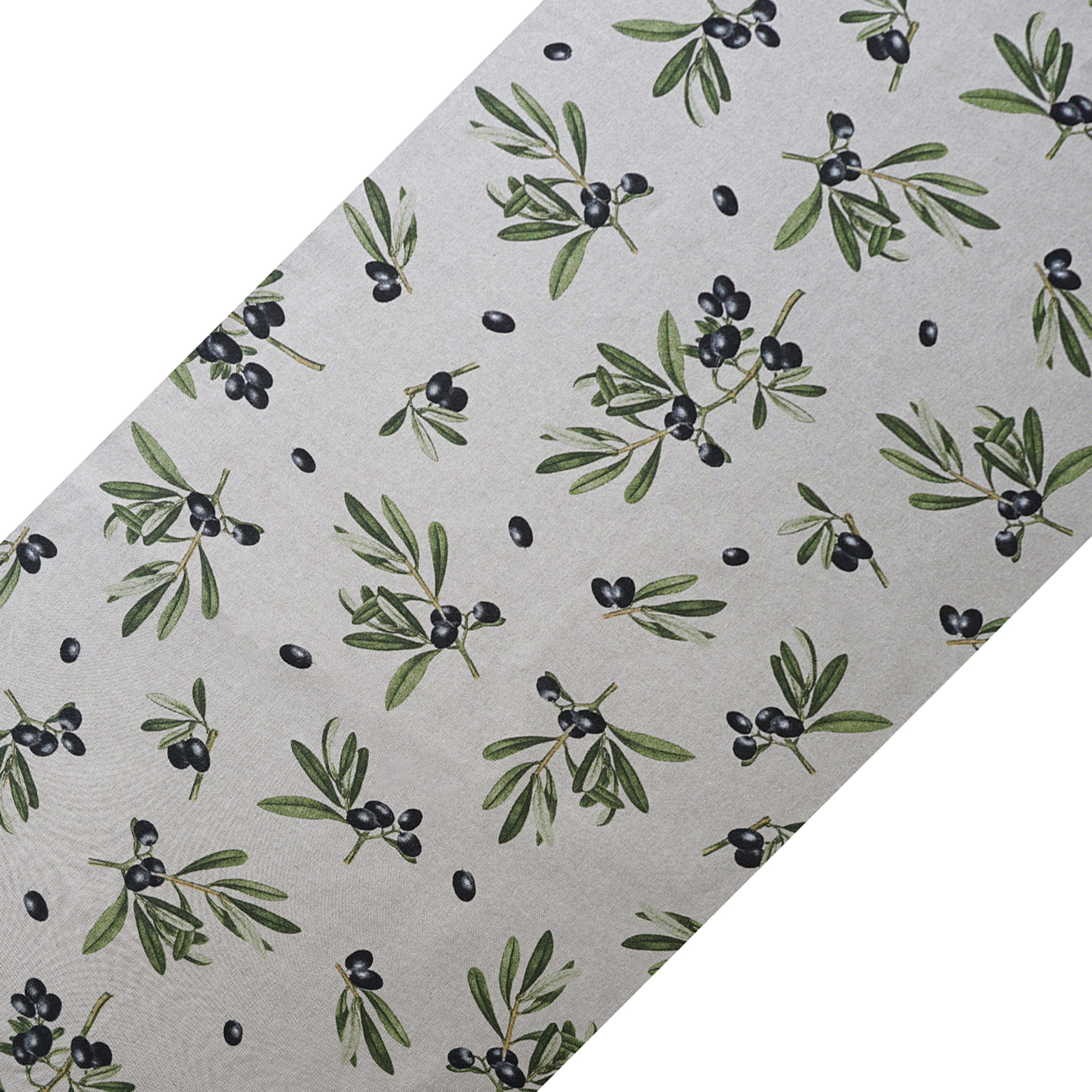 Przedmiotem oferty jest bawełniany Bieżnik 37*220cm o śródziemnomorskim motywie w czarne oliwki.