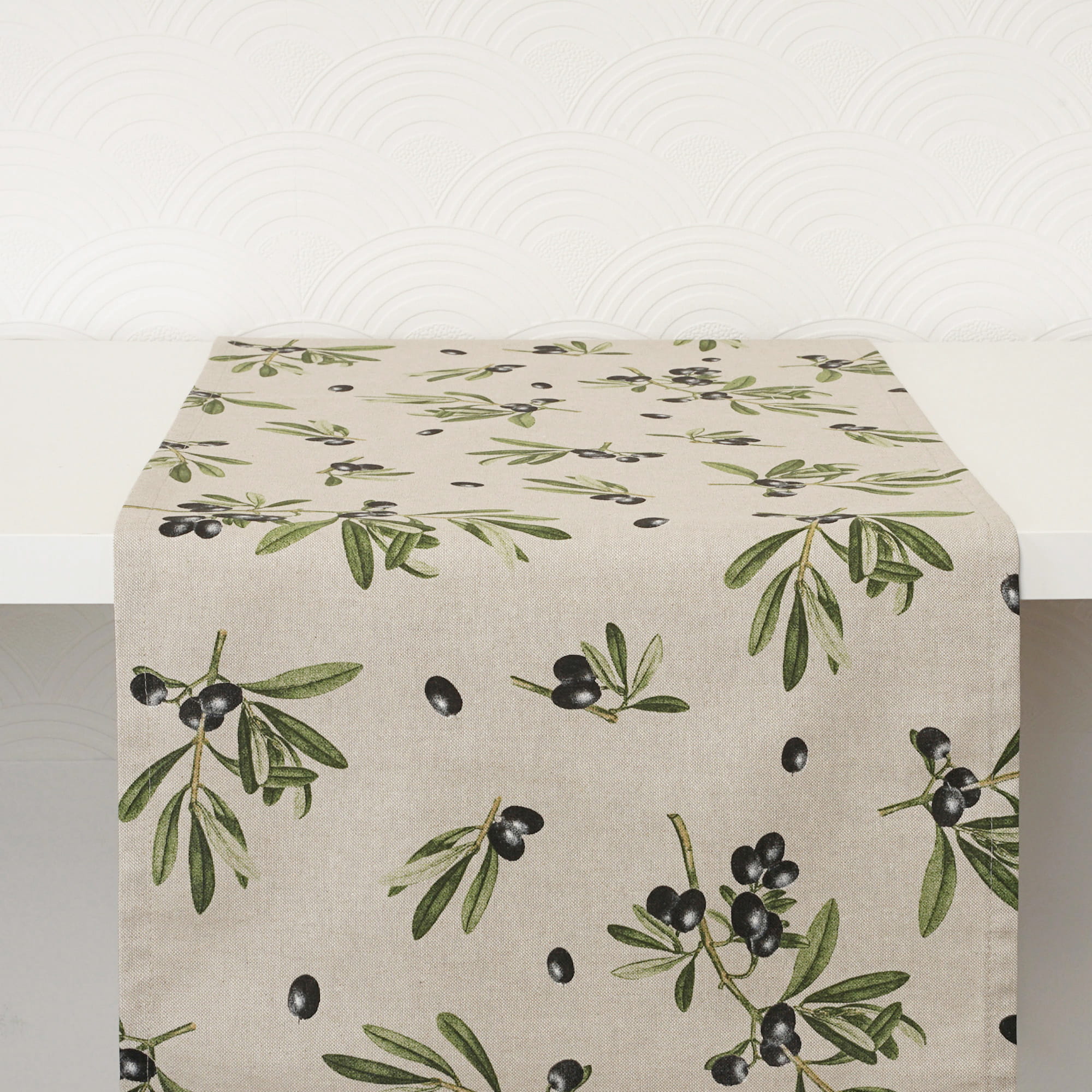Bieżnik bawełniany 220cm OLIWKI CZARNE lniany look śródziemnomorski PolDesign