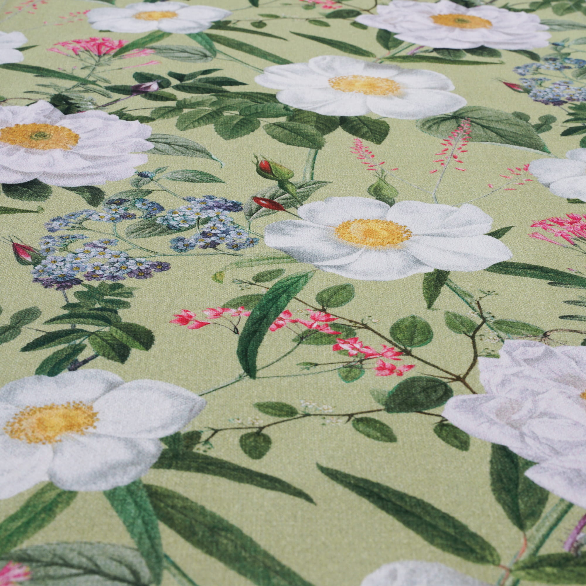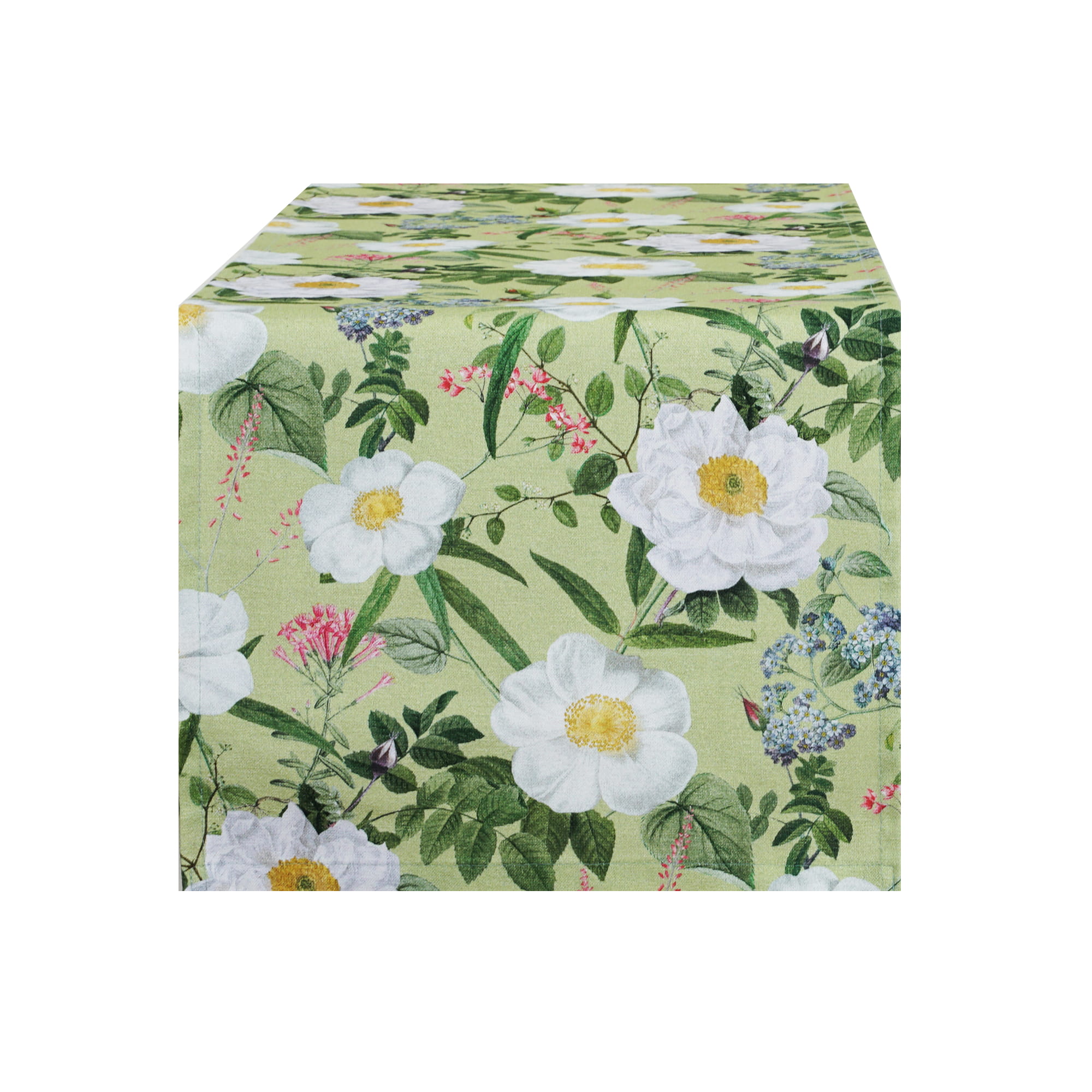 Bieżnik na stół 220 cm ANEMON wielkanocny wiosenny zielony w kwiaty