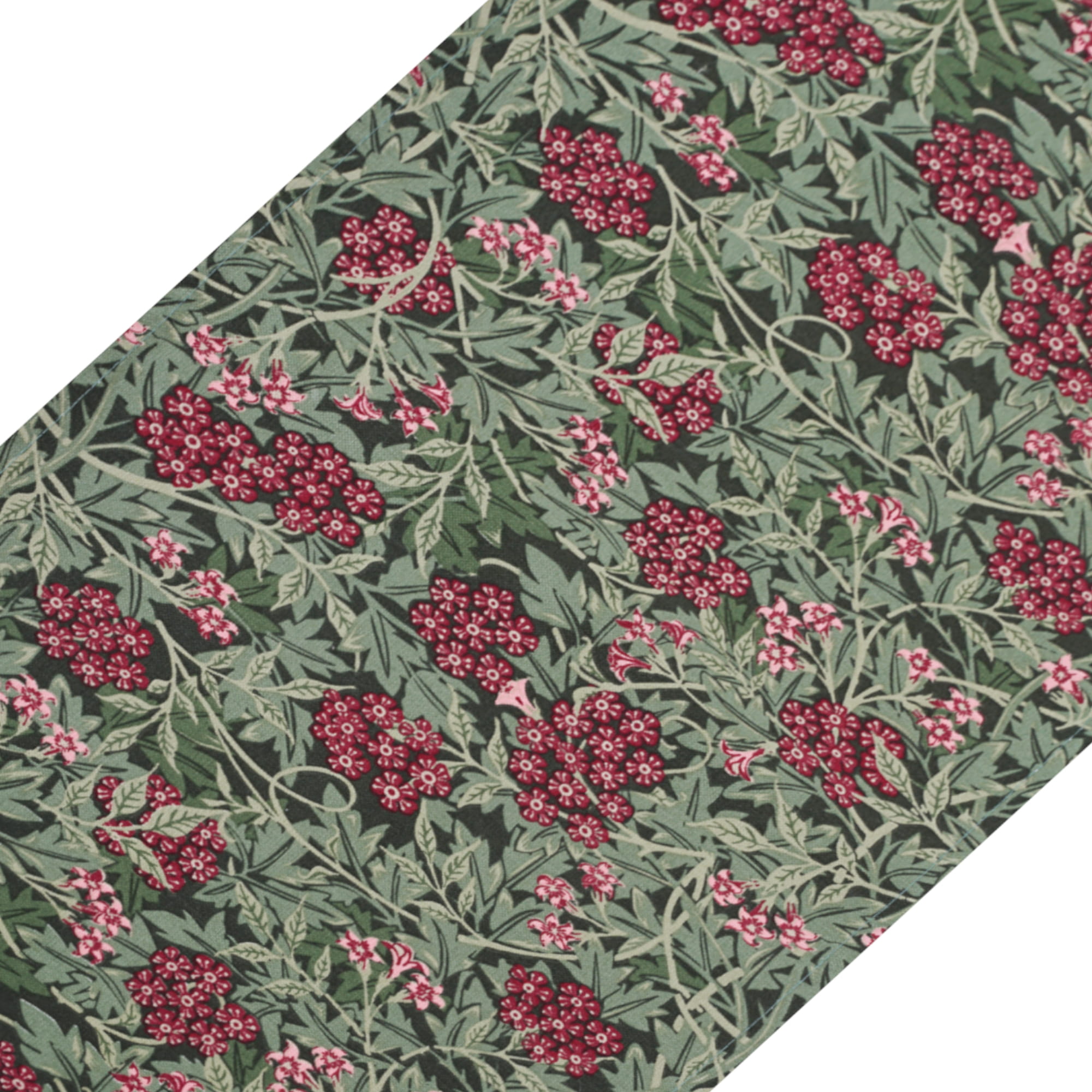 Wzór przedstawiający liście i kwiaty w subtelny sposób podkreśla harmonię z naturą, wprowadzając do wnętrza świeżość i lekkość. Starannie wykończony, bieżnik jest trwały, przyjemny w dotyku i łatwy w pielęgnacji, co czyni go zarówno praktycznym, jak i dekoracyjnym dodatkiem.