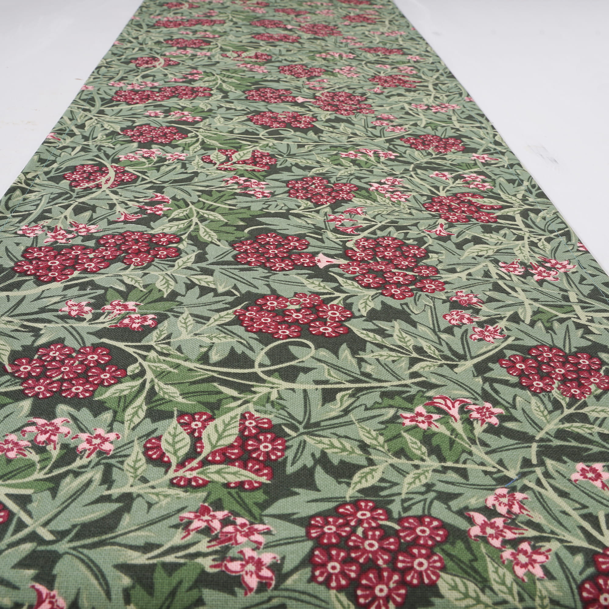 Wzór przedstawiający liście i kwiaty w subtelny sposób podkreśla harmonię z naturą, wprowadzając do wnętrza świeżość i lekkość. Starannie wykończony, bieżnik jest trwały, przyjemny w dotyku i łatwy w pielęgnacji, co czyni go zarówno praktycznym, jak i dekoracyjnym dodatkiem.