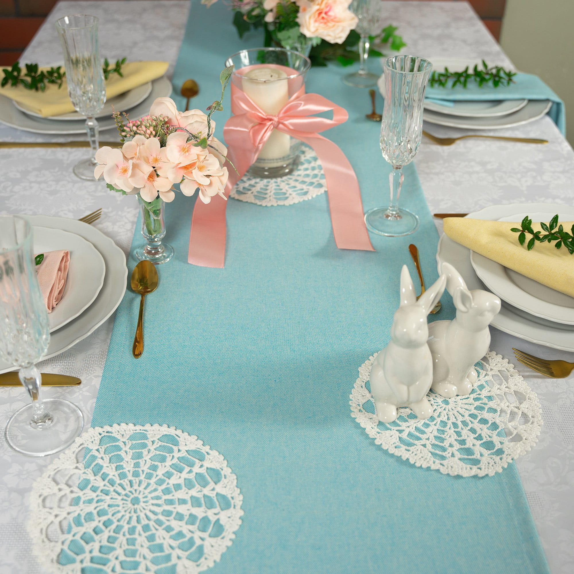 Dekoracyjny bieżnik na stół to elegancki i funkcjonalny element, który doskonale wpisuje się w atmosferę świąt. W przypadku bieżnika wielkanocnego, jego rolą jest nie tylko ozdoba, ale również stworzenie odpowiedniego nastroju, pełnego radości i wiosennego optymizmu. Bieżnik z niebieskiej tkaniny, wybrany na tę szczególną okazję, wprowadza do wnętrza świeżość i spokój, kojarząc się z niebem i budzącą się do życia przyrodą.