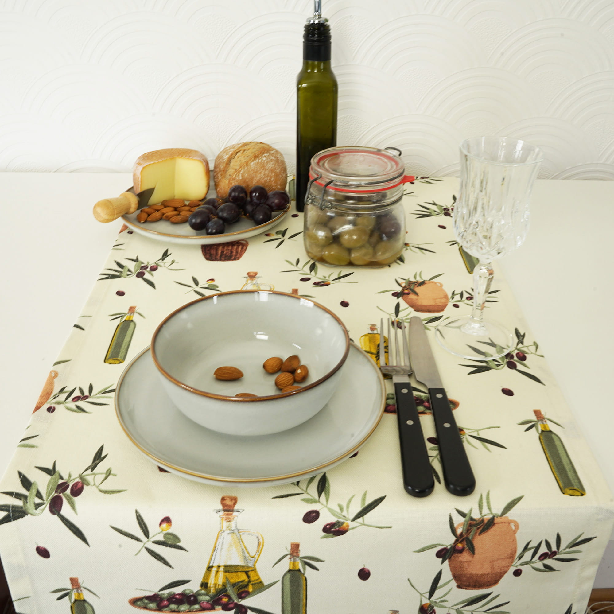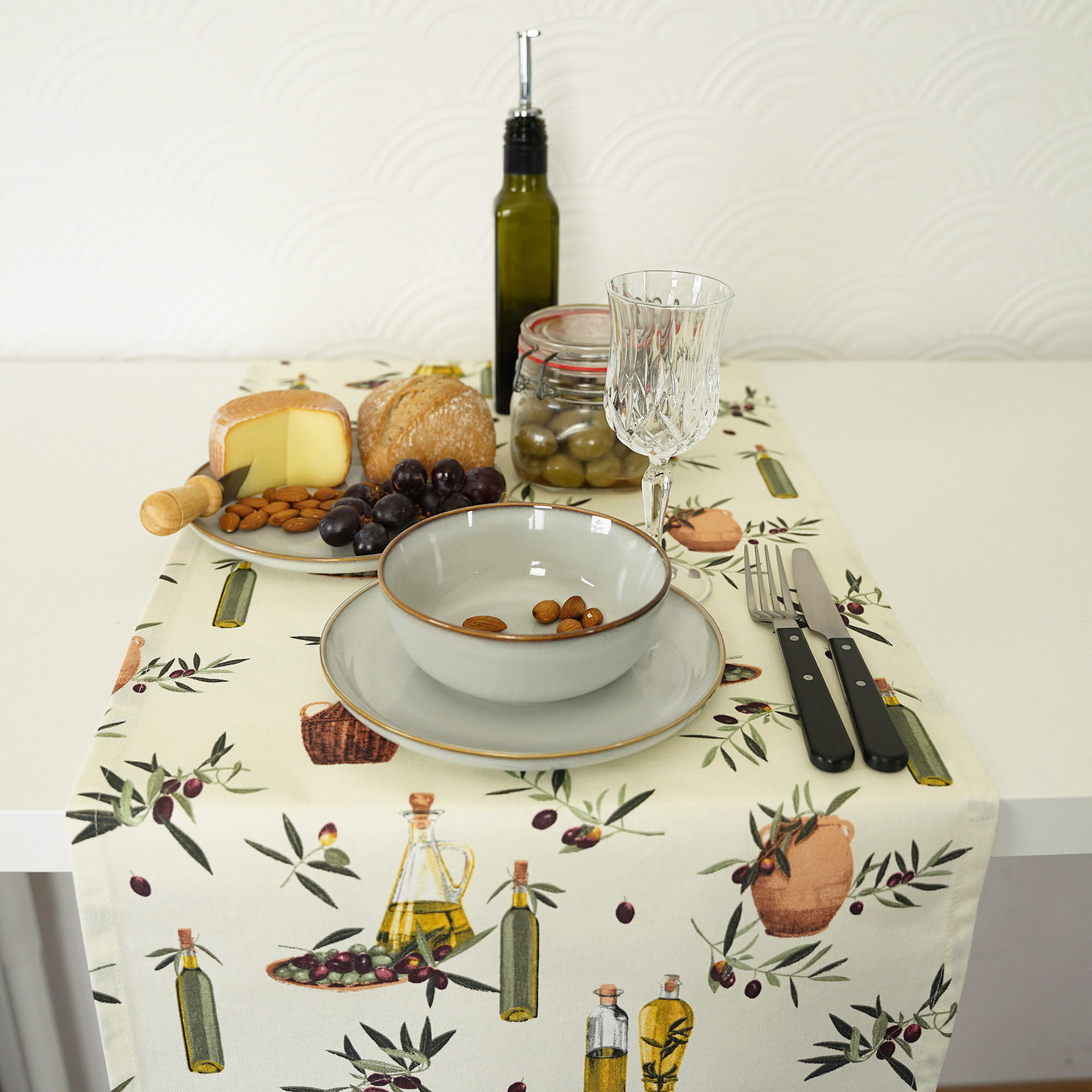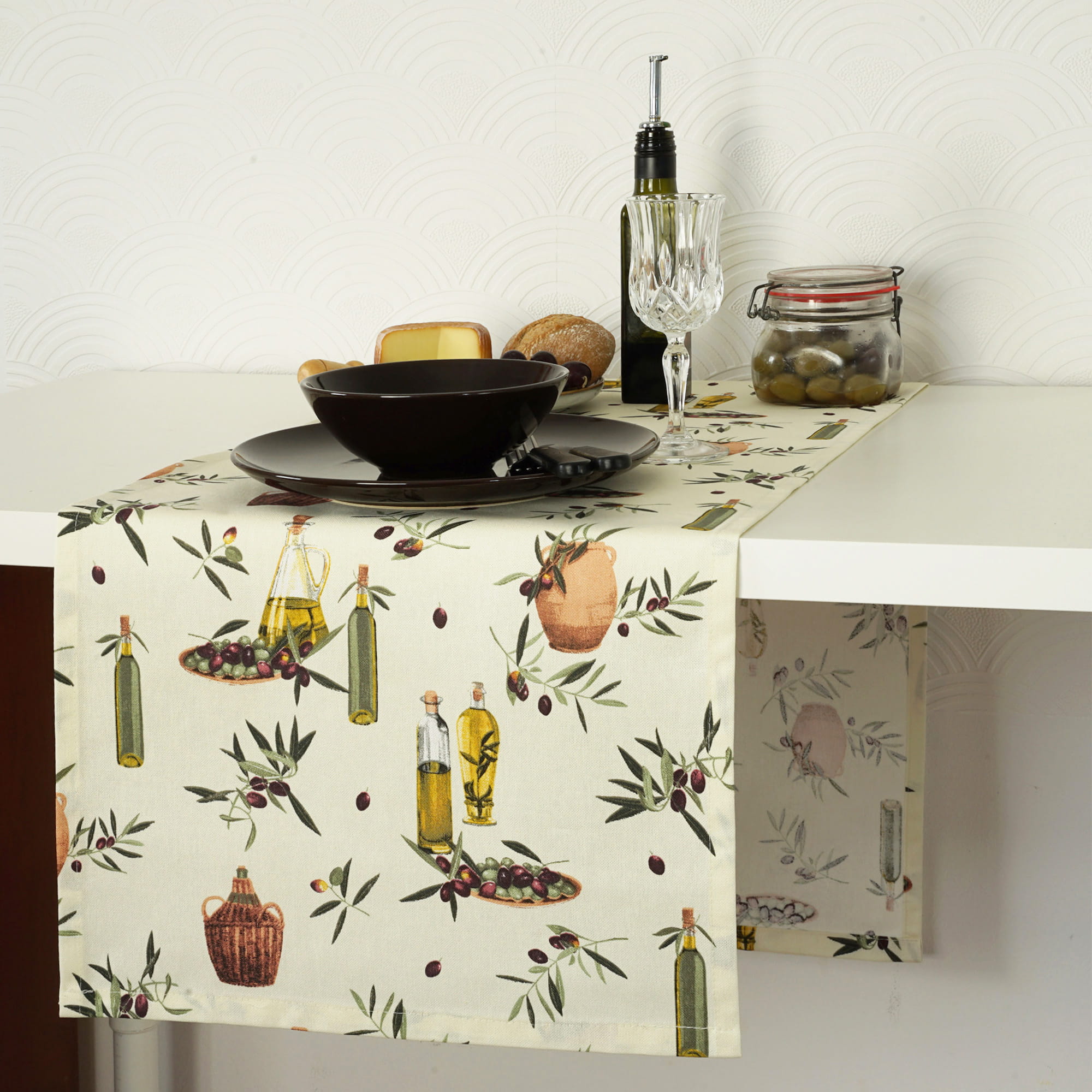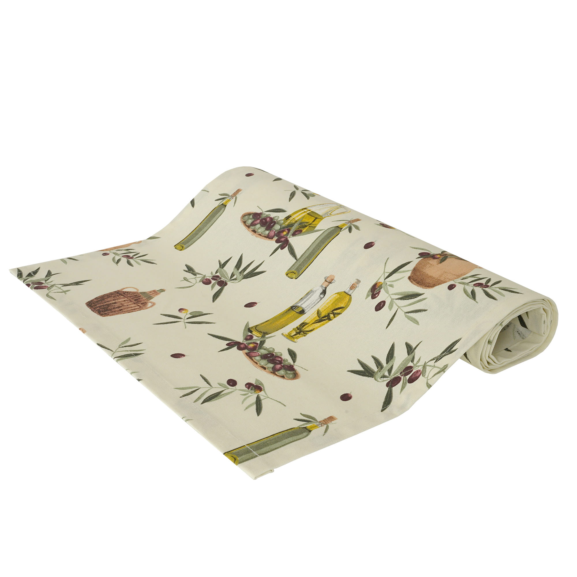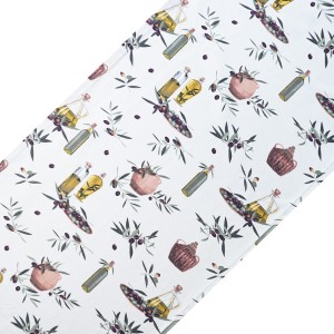 Przedmiotem oferty jest Bawełniany Bieżnik o śródziemnomorskim motywie OLIWA VIRGIN 37*280cm uszyty w naszej pracowni.