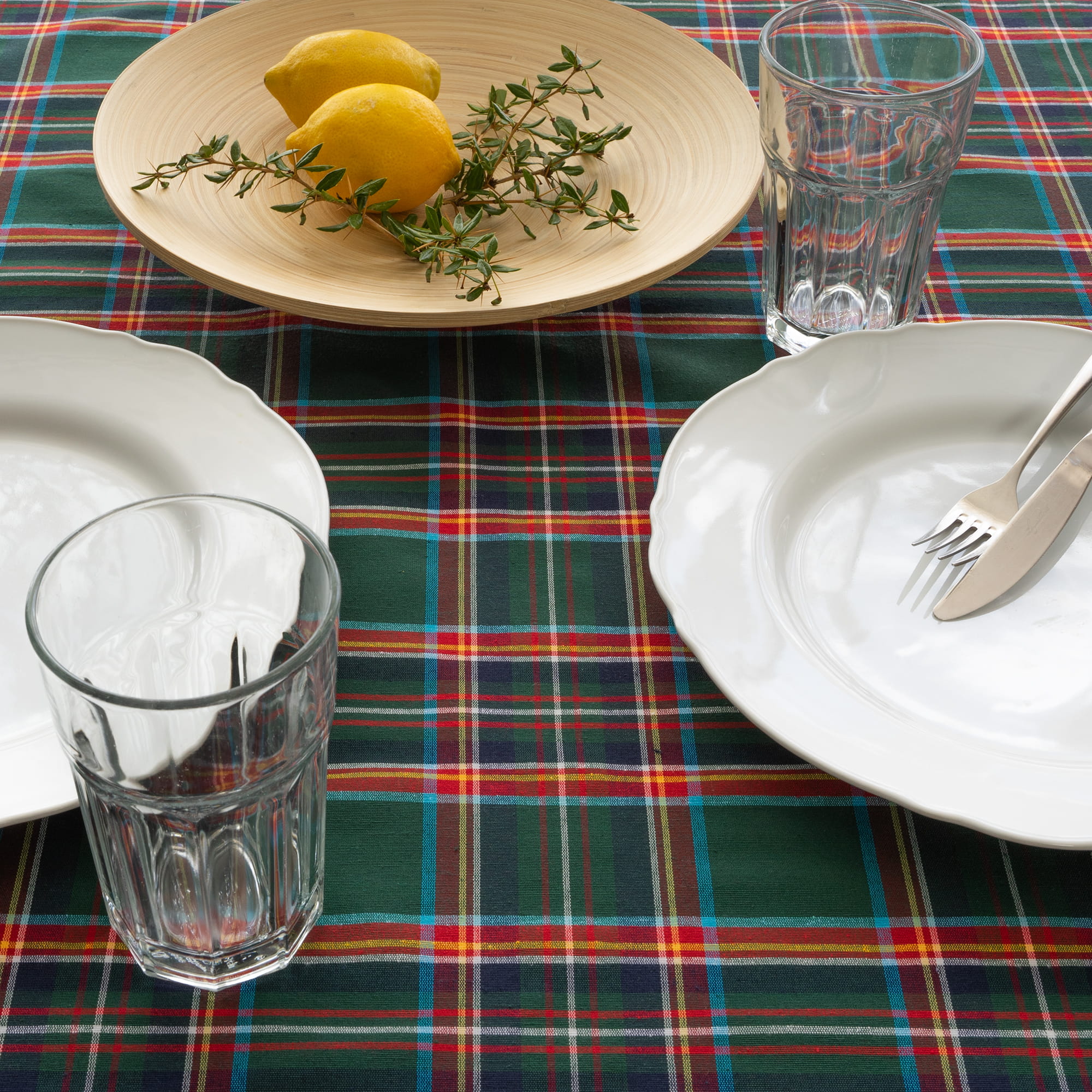 Obrus 100 cm Świąteczny Zielona Krata Bawełniany Boże Narodzenie Poldesign