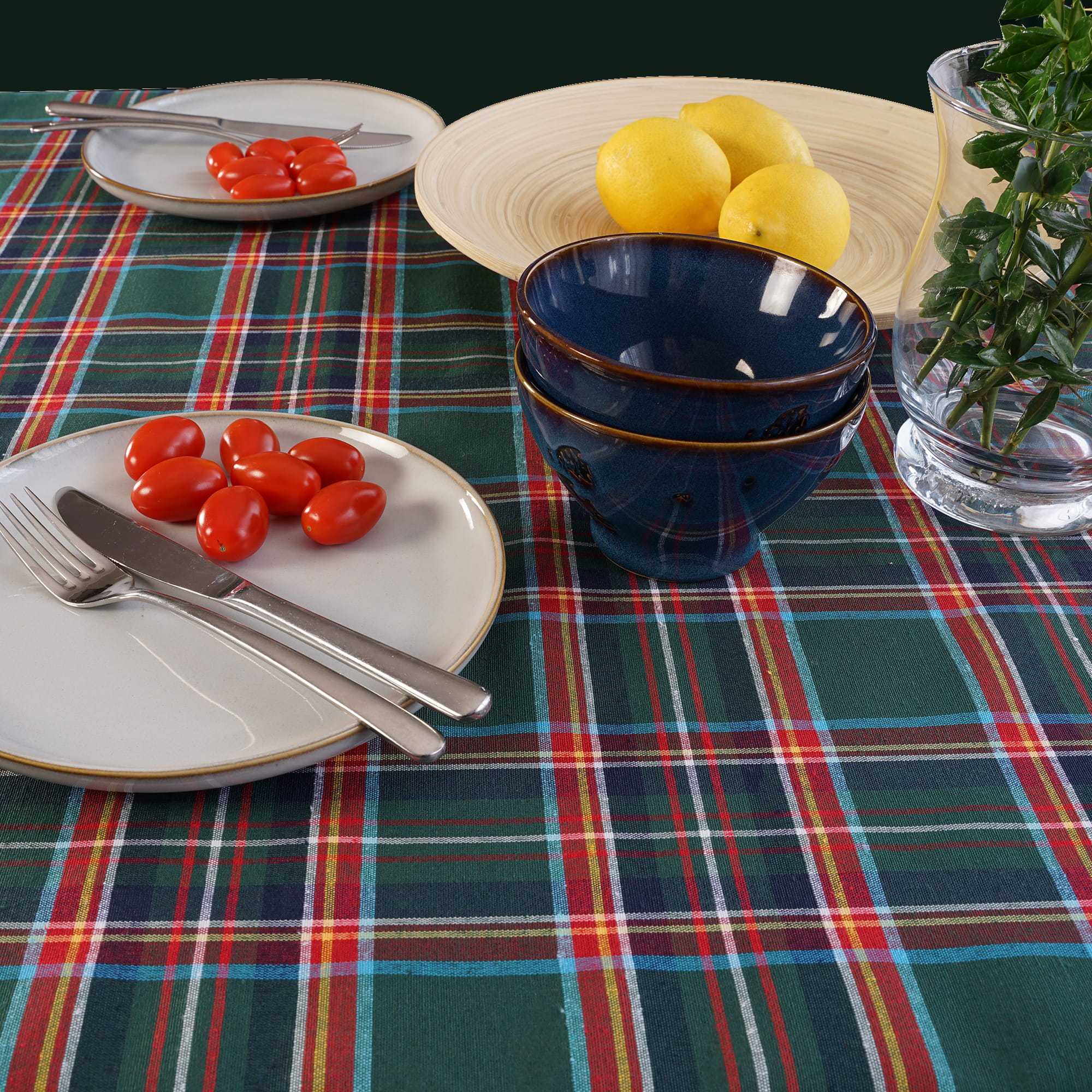Obrus 160 cm Świąteczny Zielona Krata Bawełniany Boże Narodzenie Poldesign