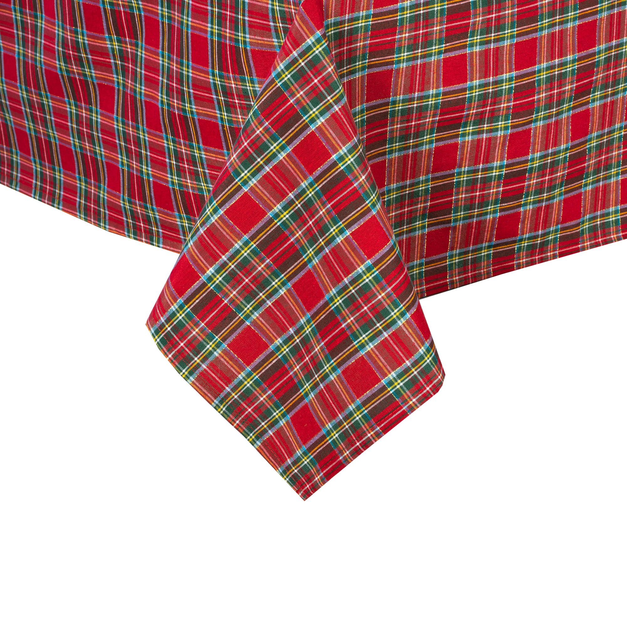 Obrus 180 cm Świąteczny Czerwona Krata ze ZŁOTĄ NITKĄ Bawełniany Boże Narodzenie Poldesign