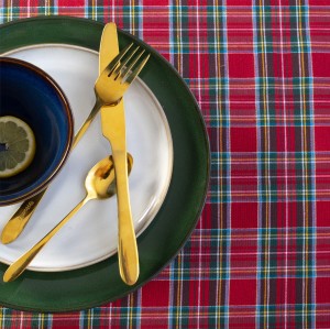 Ten obrus będzie nie tylko praktycznym dodatkiem, ale również centralnym punktem świątecznej aranżacji. Czerwona krata wprowadza domowe ciepło, a złota nitka dodaje mu klasy i wyjątkowości – idealny na kolację wigilijną, świąteczny obiad czy sylwestrowe spotkanie.