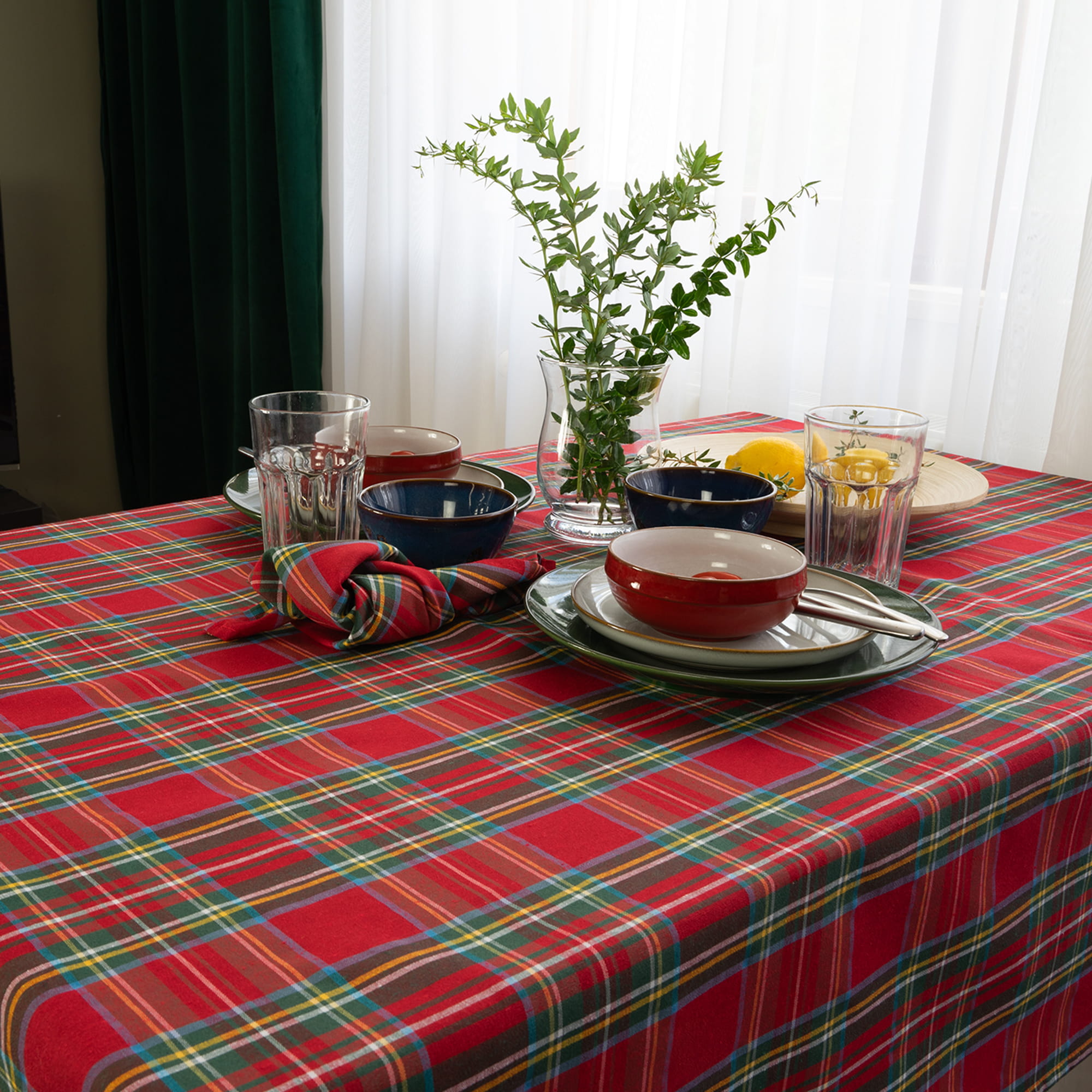 Obrus 240 cm Świąteczny Czerwona Krata Bawełniany Boże Narodzenie Poldesign