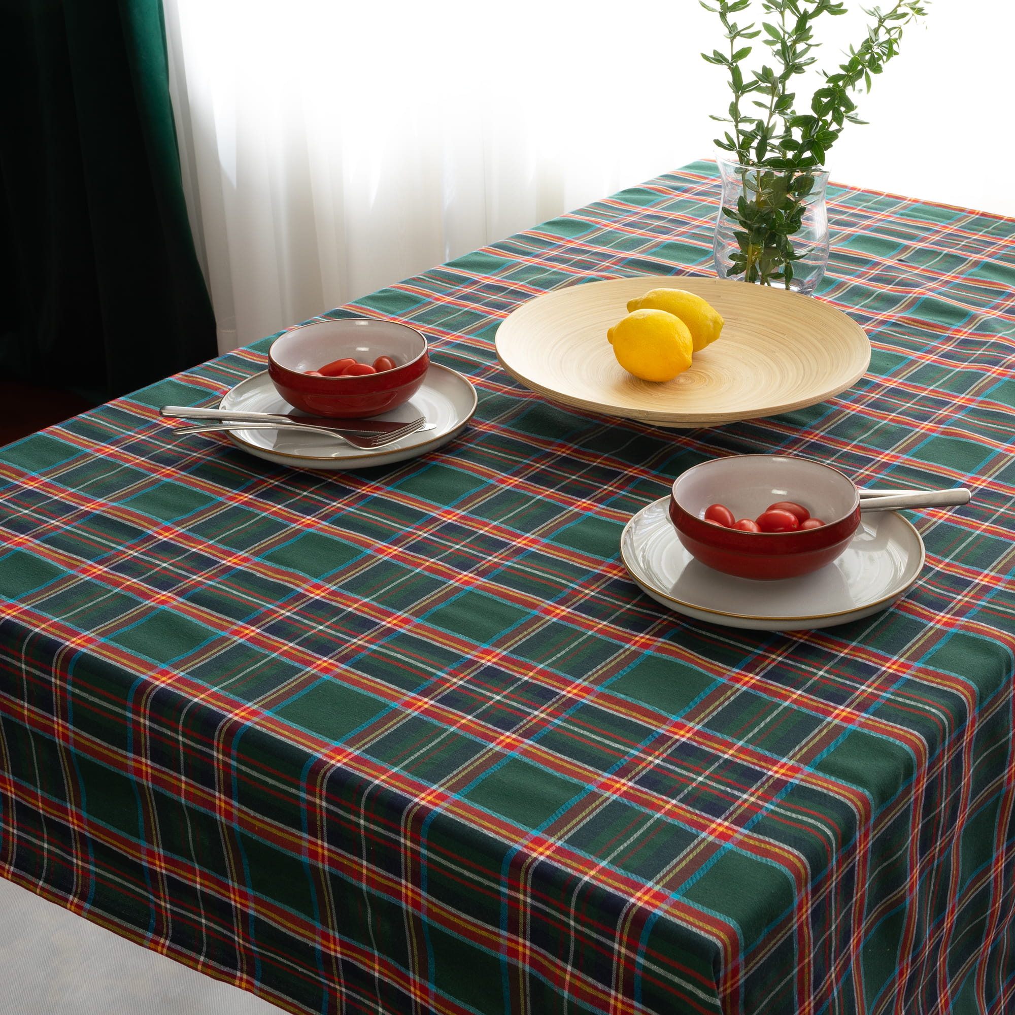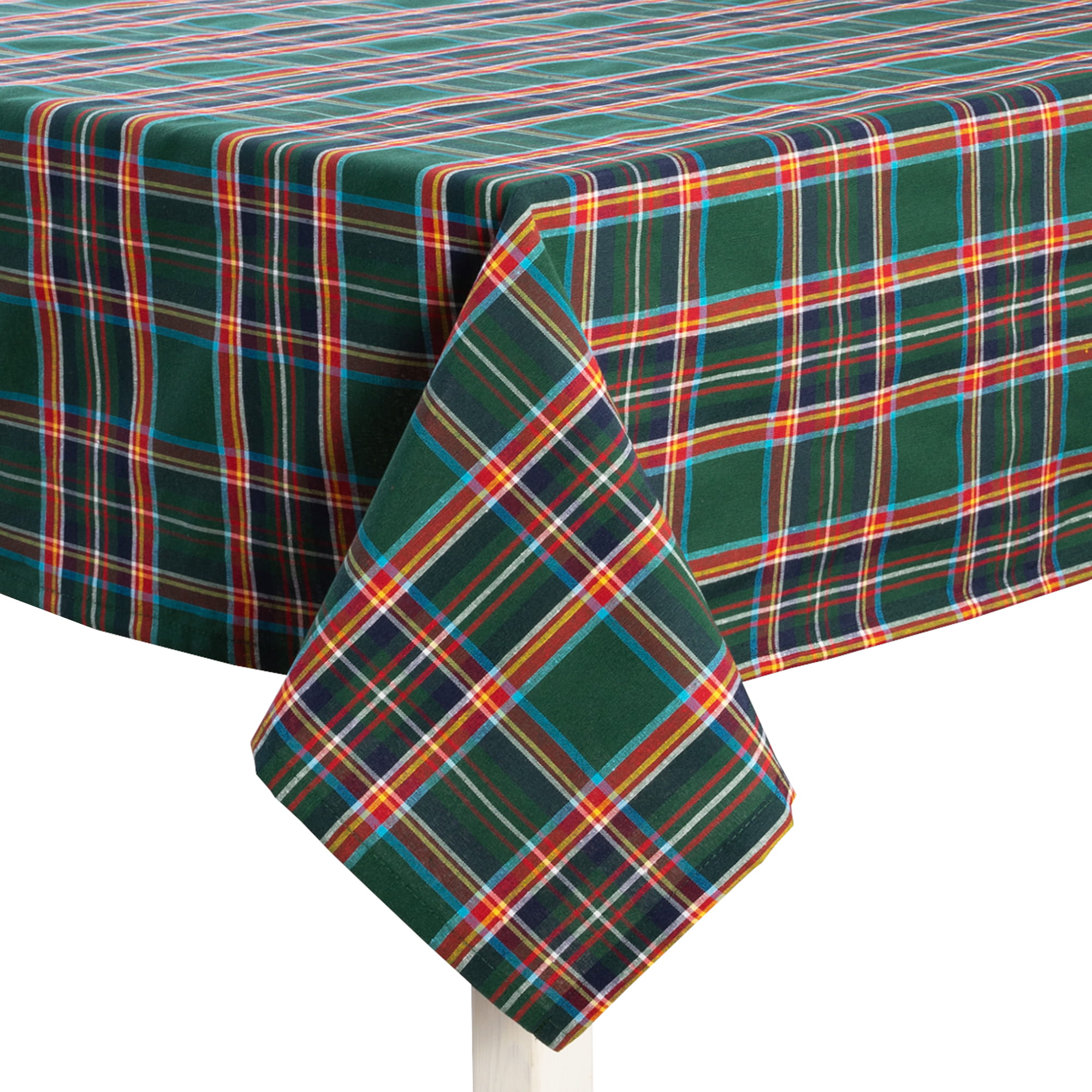 Obrus 260 cm Świąteczny Zielona Krata Bawełniany Boże Narodzenie Poldesign