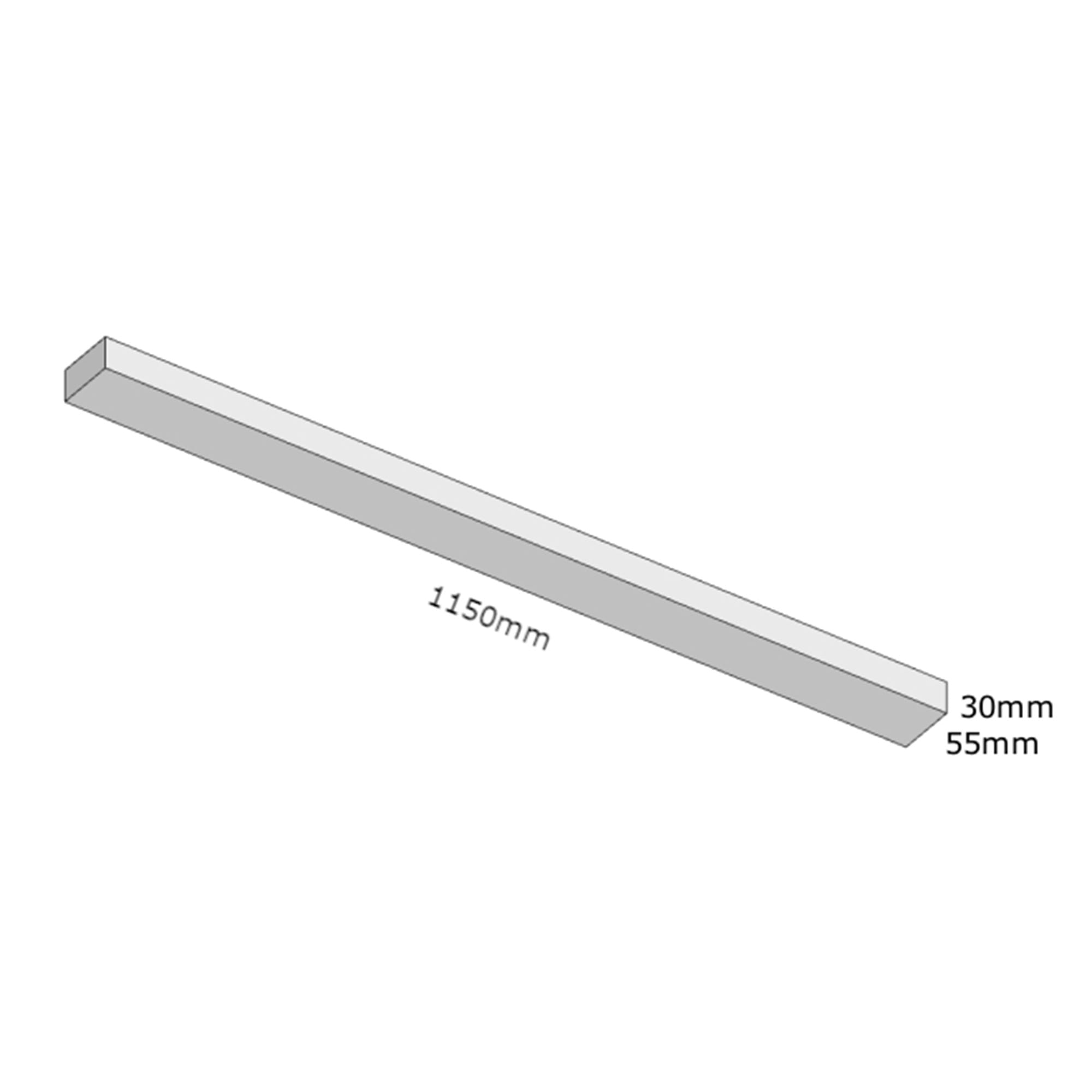 wymiary: dł. 1150mm, szerokość 55mm, wysokość 30mm;
