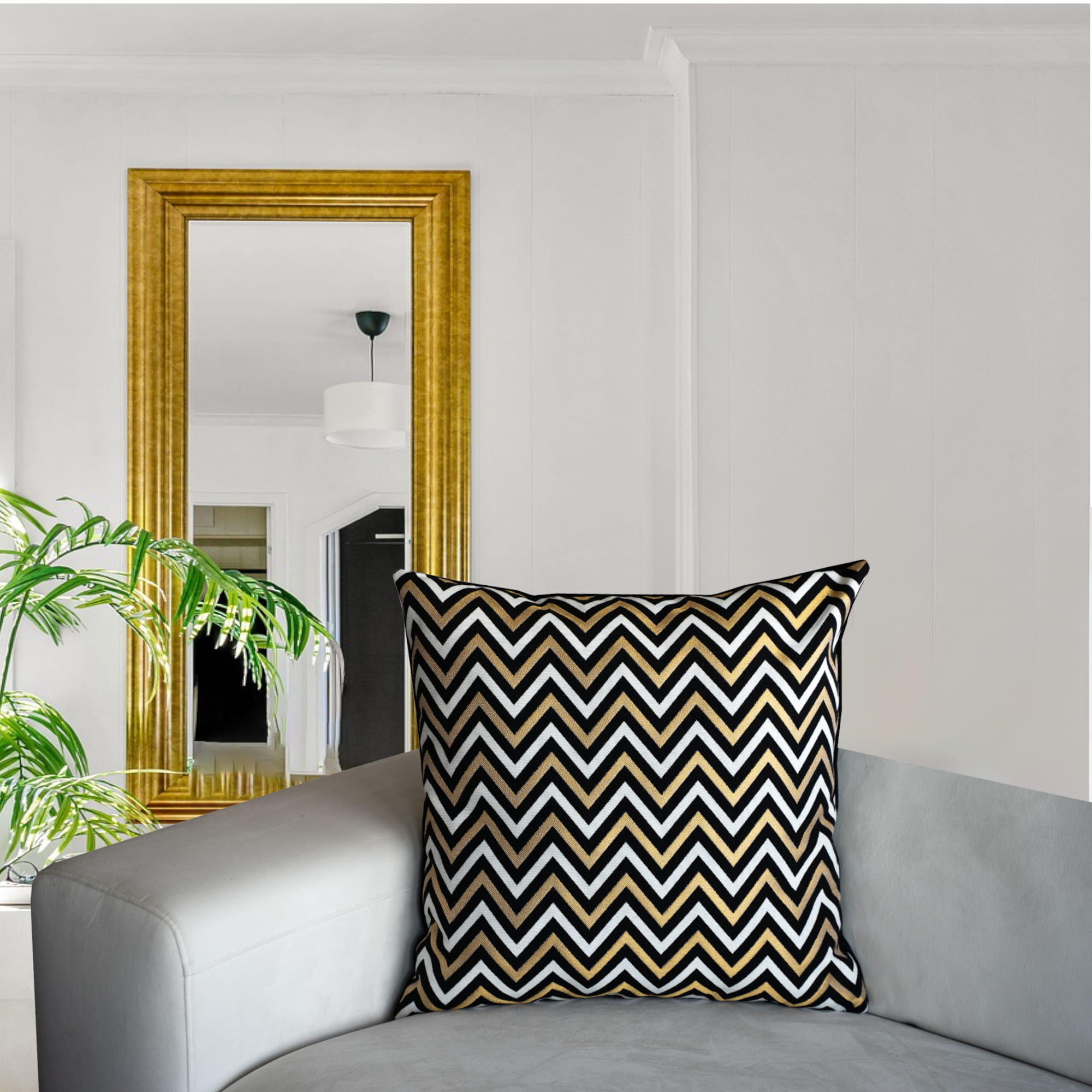 Poduszka gobelinowa 60X60 cm Czarna Złota Zig-Zac PolDesign