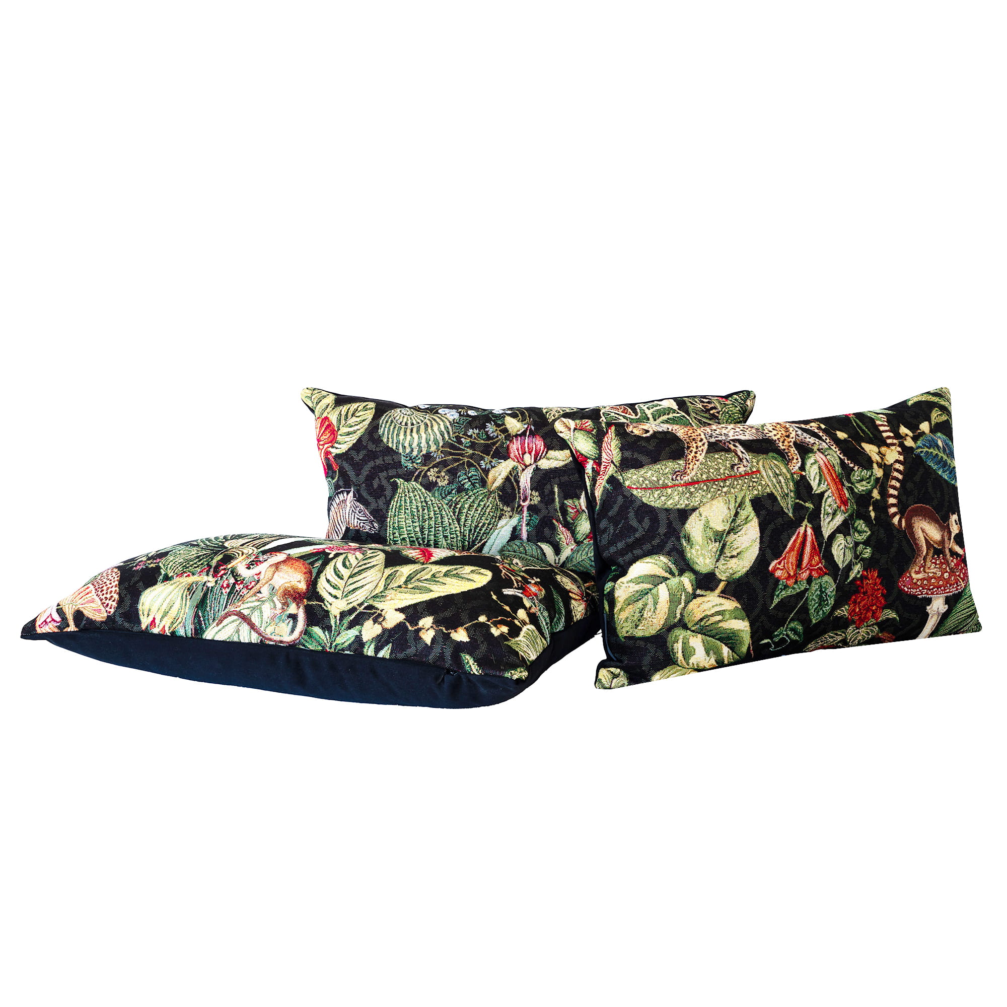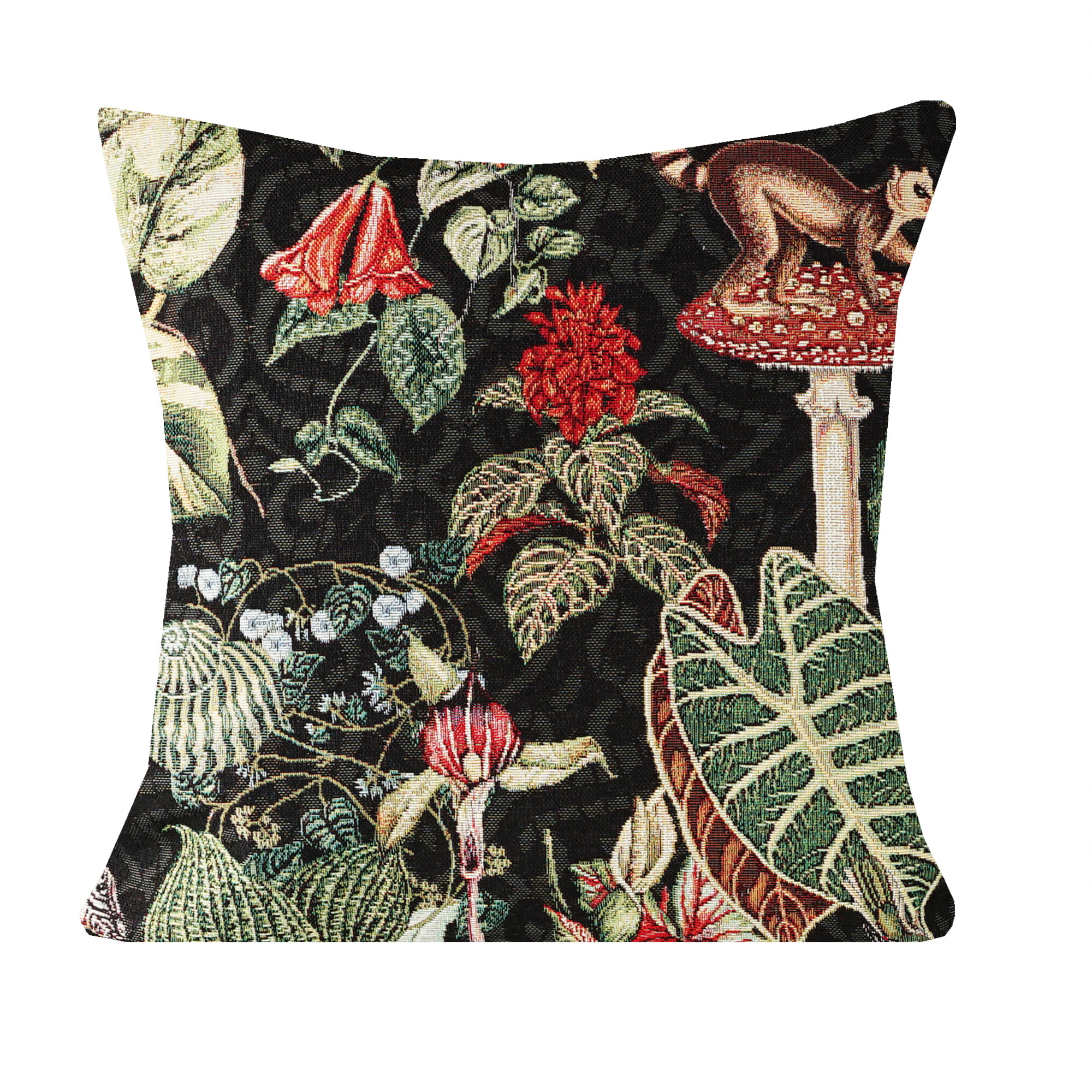 Poduszka gobelinowa 60x60cm Czarna Lemur Zebra Liście Grzyby PolDesign