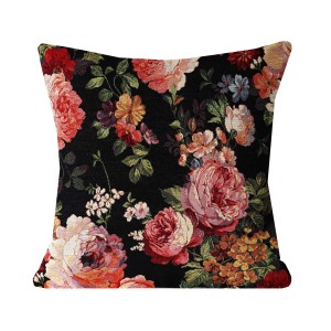 Poszewka dekoracyjna z gobelinu i czarnego aksamitu RÓŻE I PIWONIE ANGIELSKIE 60x60cm to wyjątkowy element, który wprowadza do salonu subtelną elegancję i luksusowy charakter.