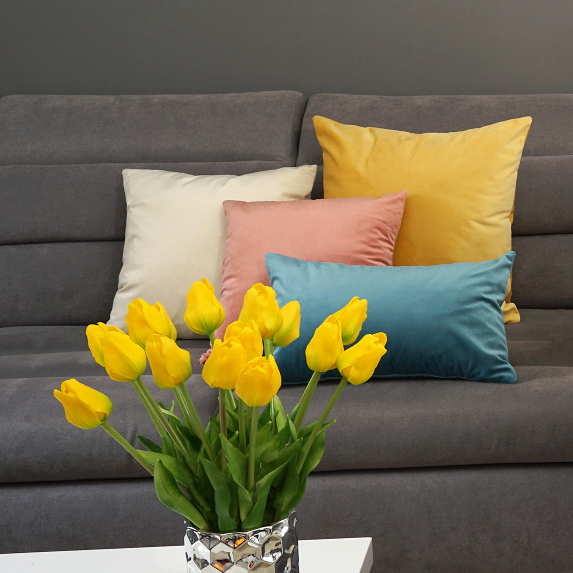 Poszewka na poduszkę z aksamitu w kolorze ecru to kwintesencja elegancji i subtelnego luksusu. Miękka, przyjemna w dotyku, tkanina delikatnie odbija światło, nadając wnętrzu wyrafinowany charakter.
