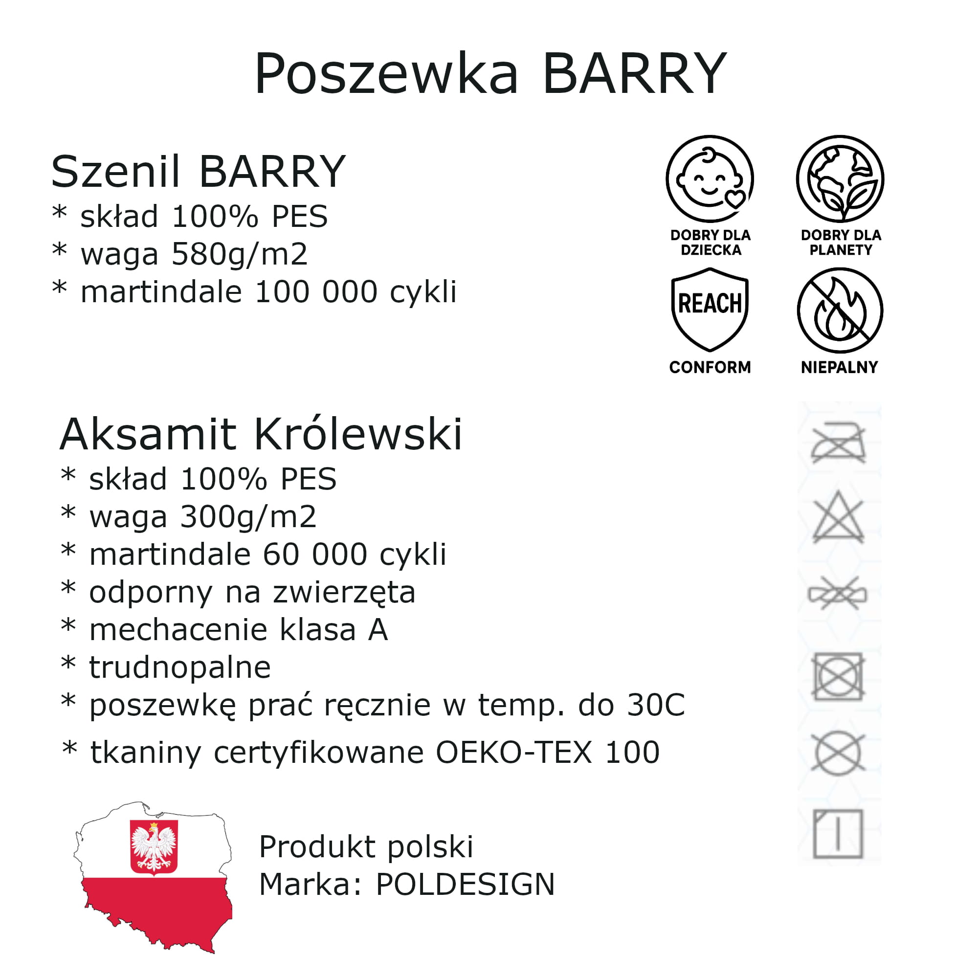 Poszewka BARRY to synonim klasy i wyjątkowości – idealnie sprawdzi się zarówno w nowoczesnych, jak i klasycznych aranżacjach. Dzięki zastosowaniu tkaniny o wysokich parametrach technicznych, charakteryzuje się trwałością, odpornością na przetarcia oraz łatwością w pielęgnacji.